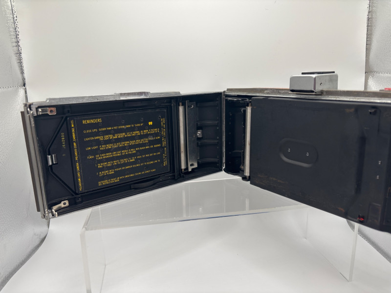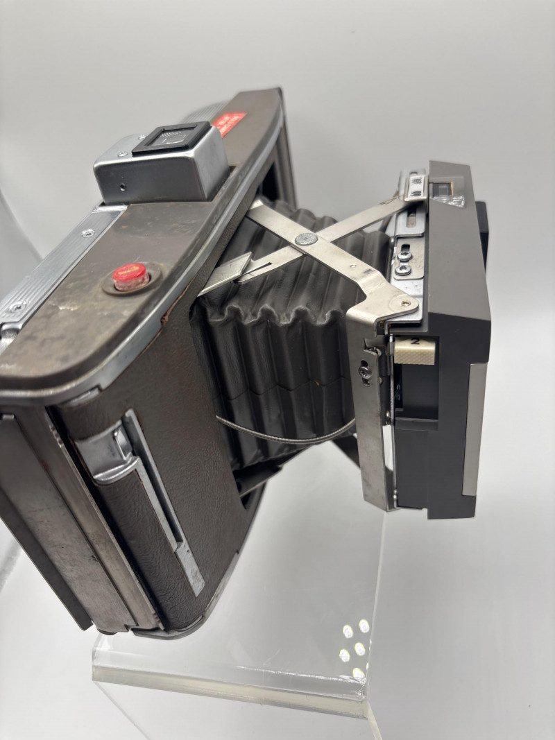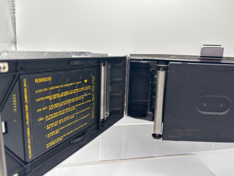 Classic vintage Polaroid Land Camera Model 360, a mid-century instant camera known for its distinctive folding bellows design and quality build. This camera features the iconic Polaroid automatic pack film system and includes the original handle and lens assembly with the Lighten/Darken exposure control. The camera folds compactly for storage and opens to reveal the bellows-style lens extension, a hallmark of Polaroid’s early instant photography cameras. The Model 360 was considered one of the more advanced Land Cameras of its time and was popular with photographers who wanted instant results. A great piece for vintage camera collectors, photography enthusiasts, or display in a studio or office. The industrial mid-century design also makes it a striking decorative item. Vintage condition. Shows normal age and cosmetic wear consistent with storage and use. Untested. 📦 Shippable The Polaroid Land Camera Model 360 was produced during the 1960s and used Polaroid’s pack film system to produce instant photographs. Polaroid Land Cameras revolutionized photography by allowing photographers to see their images within minutes, decades before digital photography. These cameras remain highly collectible today and are often displayed for their classic industrial design and historical importance in photography.