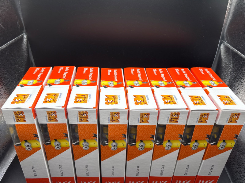 Lot of eight identical Mega Construx Despicable Me “Gru’s Car” building sets, all new in original packaging. Each set features a Minion character and buildable vehicle inspired by the popular Despicable Me movie series. These small construction sets include pieces to build Gru’s signature vehicle along with a Minion figure, making them fun for kids who enjoy building toys and characters from the animated films. With eight identical sets included, this lot is perfect for Easter baskets, Easter egg hunts, party favors, classroom rewards, or small gifts. The compact box size makes them easy to divide up for multiple kids or holiday activities. New in box. Please review photos carefully for exact condition. 📦 Shipping available. Mega Construx produces construction toys based on popular entertainment franchises and characters. The Despicable Me series has been especially successful, with the playful Minions characters becoming one of the most recognizable animated brands worldwide. The Gru’s Car building set allows builders to assemble a small vehicle along with a Minion character from the films. These sets combine construction play with collectible movie-themed characters, making them popular with fans of the Despicable Me and Minions movies.