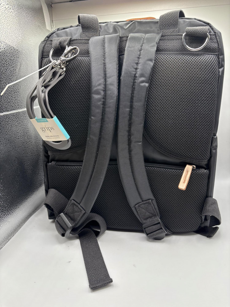 Lot # 173 - JJ Cole Papago Diaper Backpack Black w/ Copper Trim NWT 12 Pockets