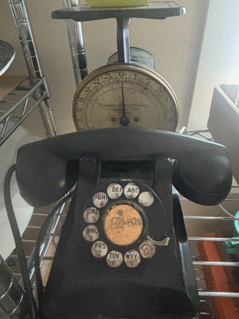 Family Scale by Landers, Frary & Clark. The telephone showcases the