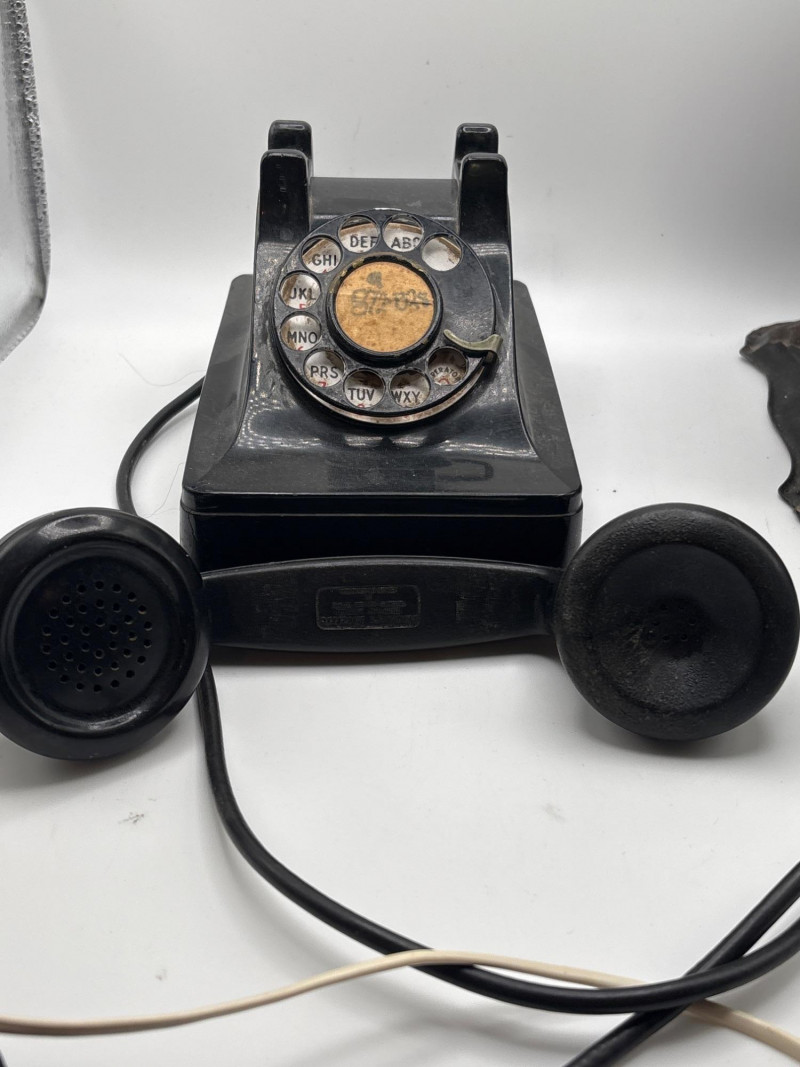 making it a standout addition to any collection or décor setting. This lot features a classic black rotary telephone alongside a Columbia