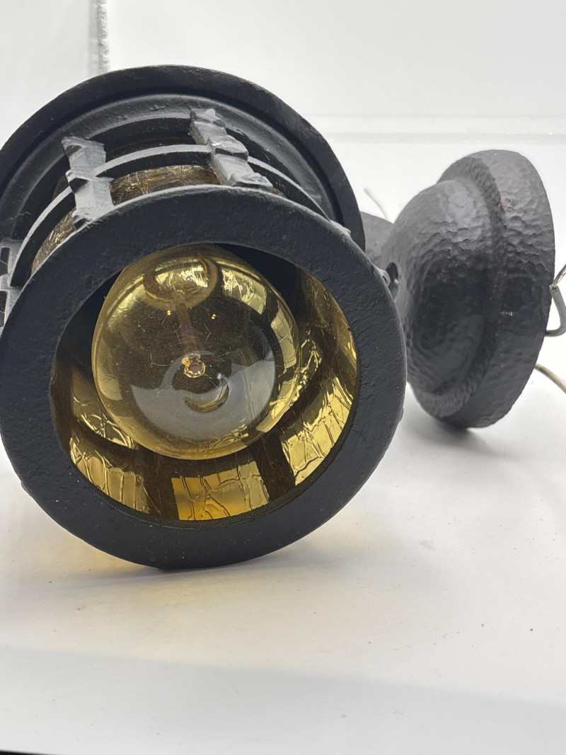 Lot # 8 - Vintage Cast Metal Wall Lantern Amber Glass Porch Light