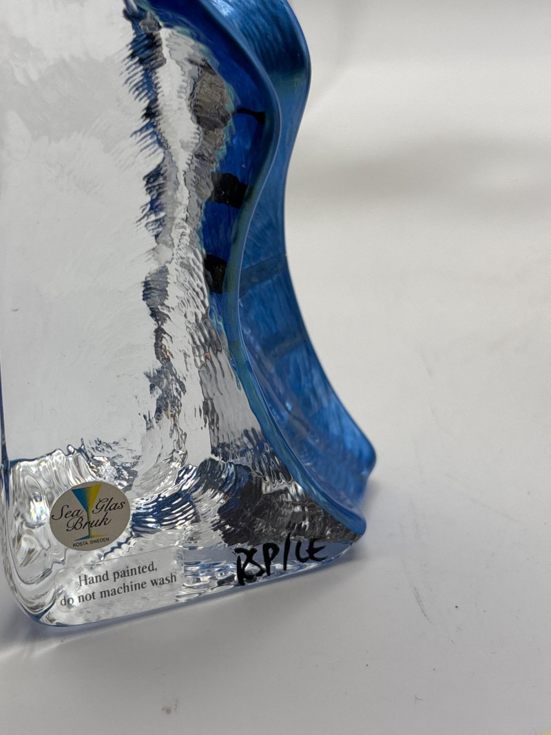 • Blue art glass cat – approx. 6" tall