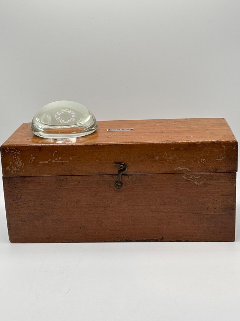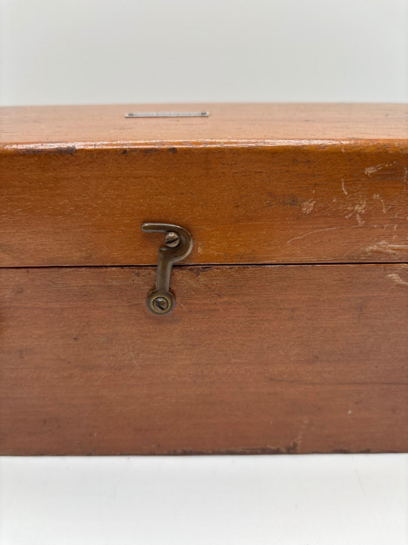 fitted wooden case, a classic tool used for precision measuring in pharmacies,
