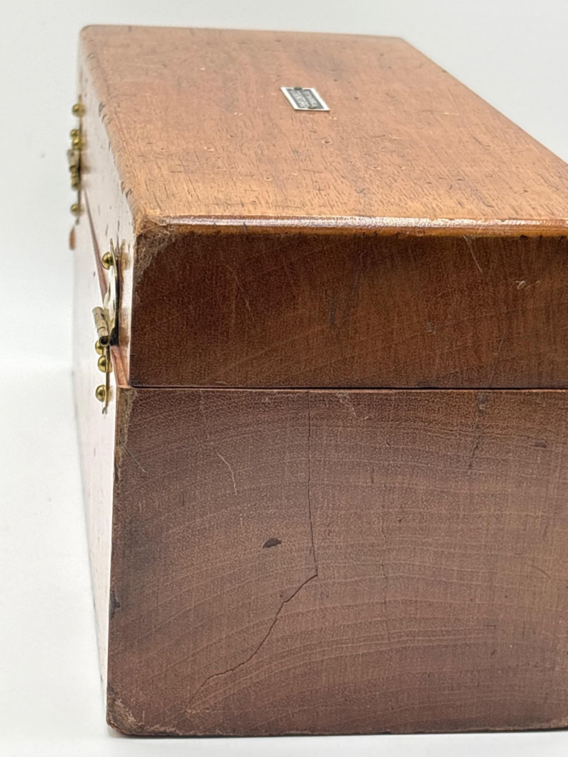and natural patina from age, and the hinged wooden case keeps everything