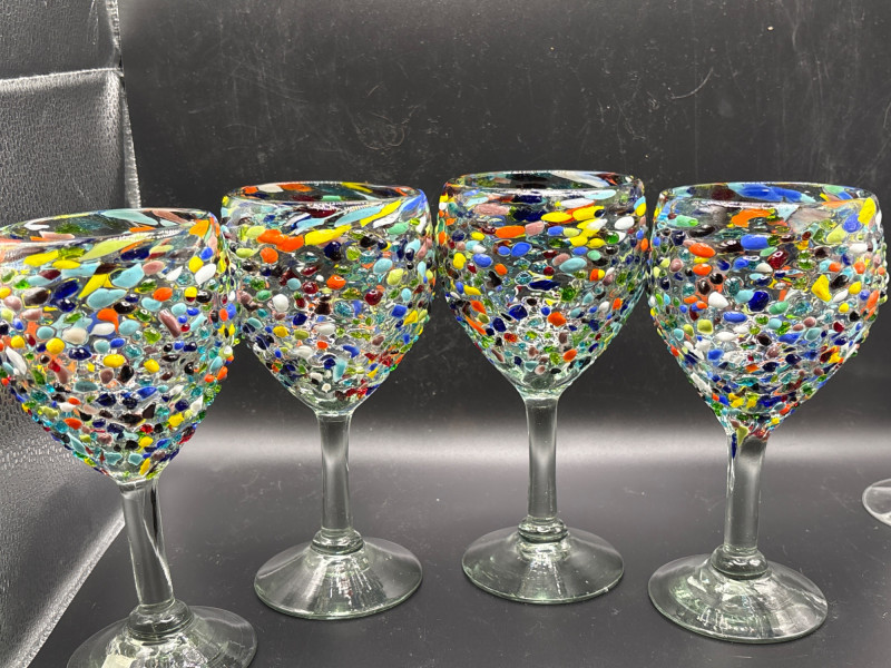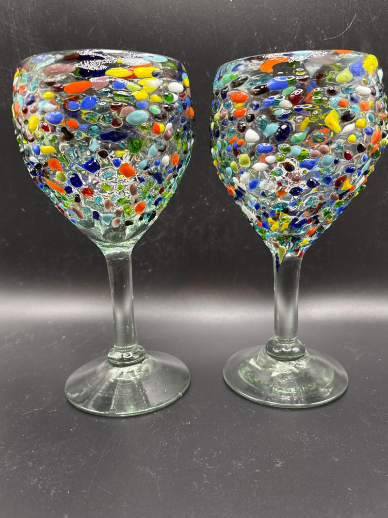 ✔️ Combined shipping offered on multiple lots Please note: Shipping is charged separately from the auction high bid. A second invoice for shipping costs will be sent to the winner after the auction closes. Confetti Goblets: 7" Height | 3" Width Pilsner Flutes: 9" Height | 2.5" WidthShipping