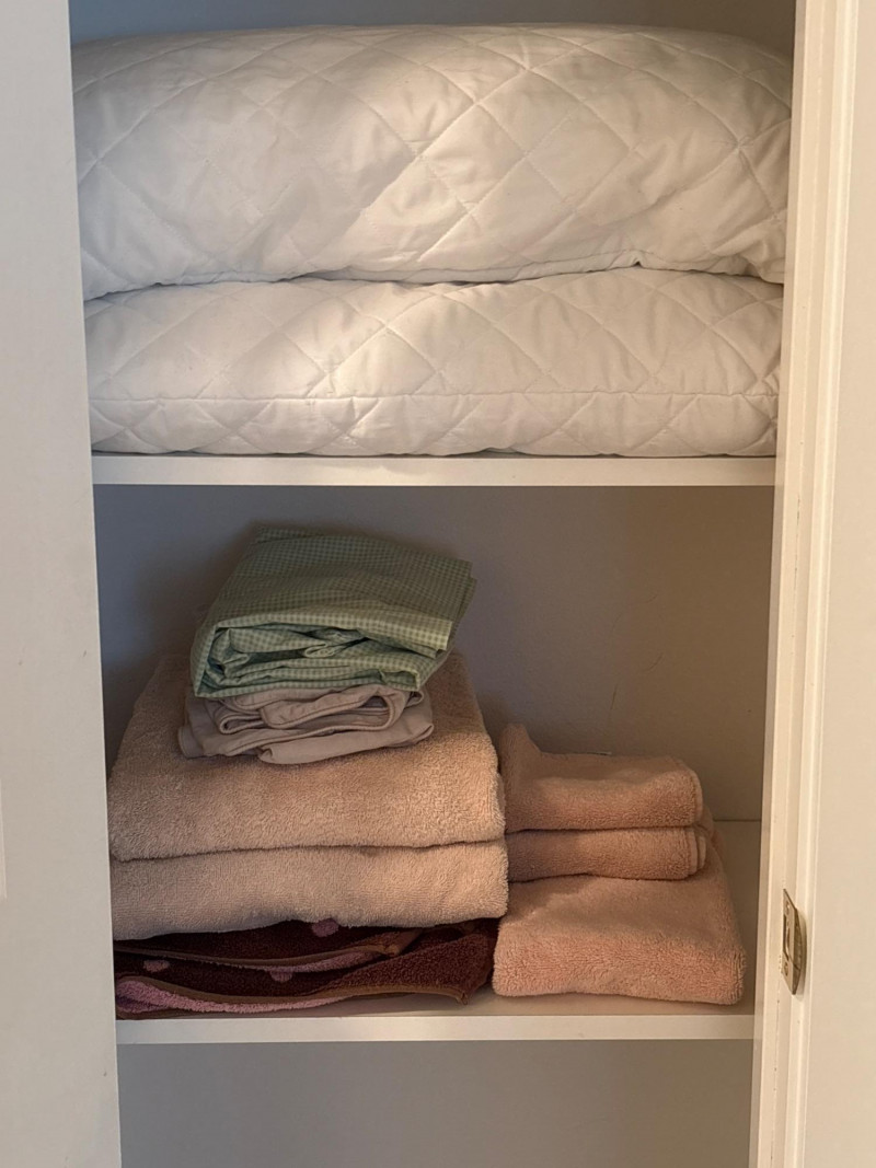 A practical starter set of clean, home-ready linens. This lot is perfect for a guest room refresh or for stocking a new space with the basic essentials. The set includes: 2 Standard Pillows: Two full-size bed pillows, clean and in good structural shape. Selection of Bath Towels: A small, curated set of plush towels in neutral earth tones (tan and chocolate brown). Quilted Bedding Protectors: Two white quilted mattress or topper pads for added comfort. Folded Linens: A small assortment of coordinated sheets and hand towels. Condition: Good pre-owned condition. All items have been laundered and are free of major stains, tears, or heavy wear. Ready for immediate use. Please note: Shipping is charged separately from the auction. once auction invoice paid, A second invoice for exact shipping costs will be sent to the winner.Shipping