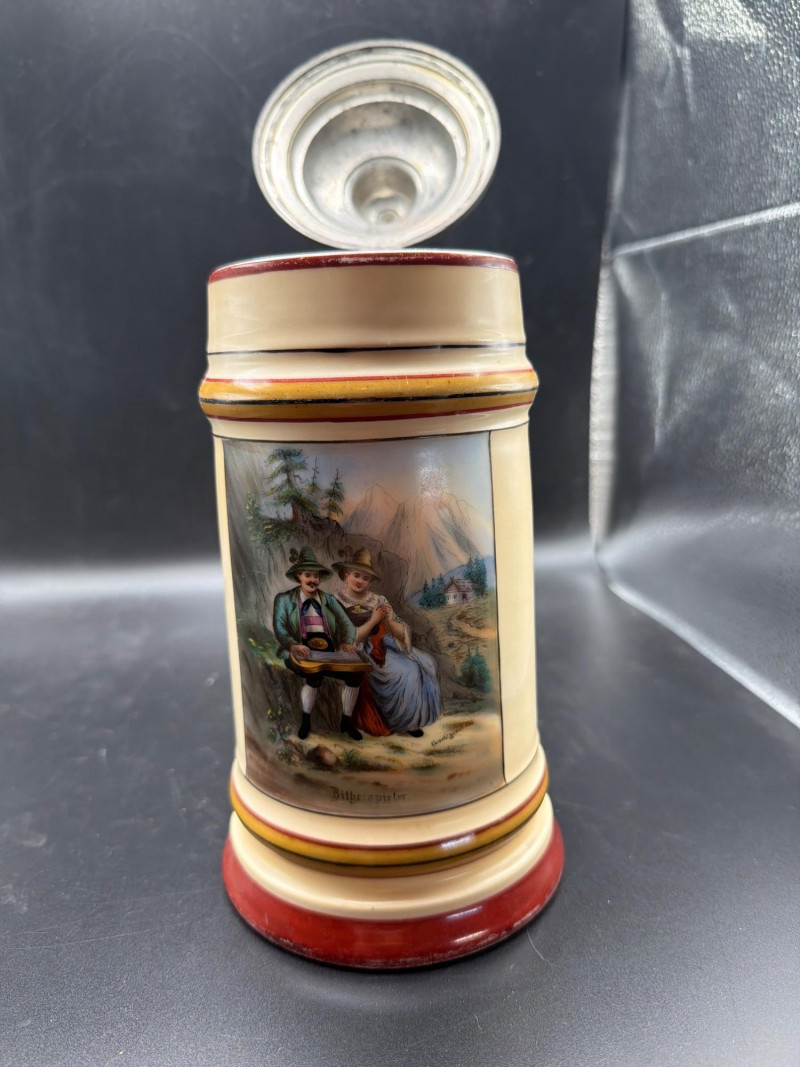 Lot # 86 - Vintage Artstyle Chocolate Tin & German Beer Stein