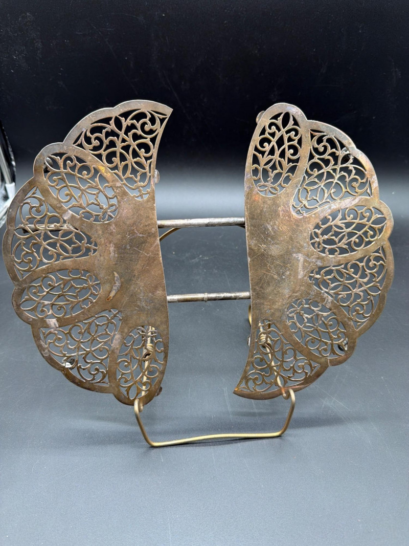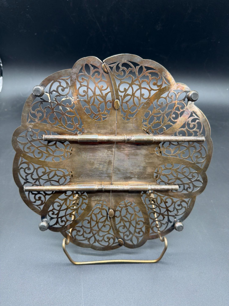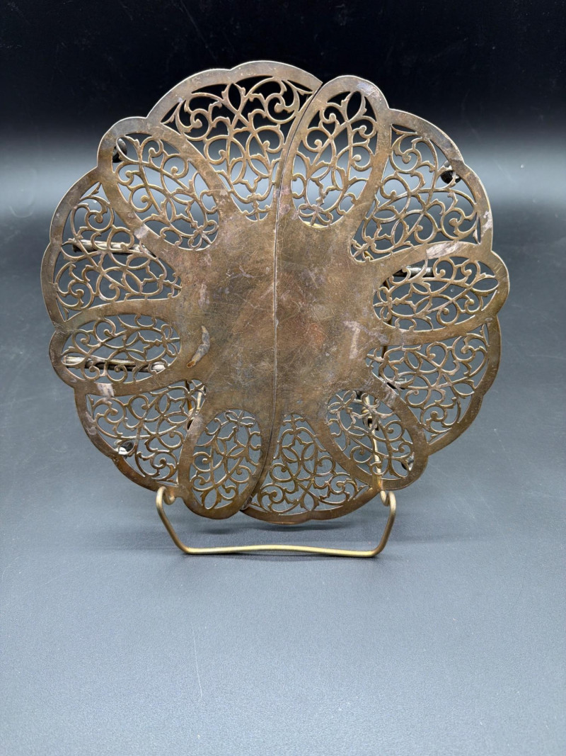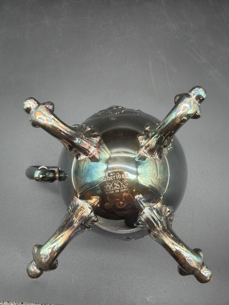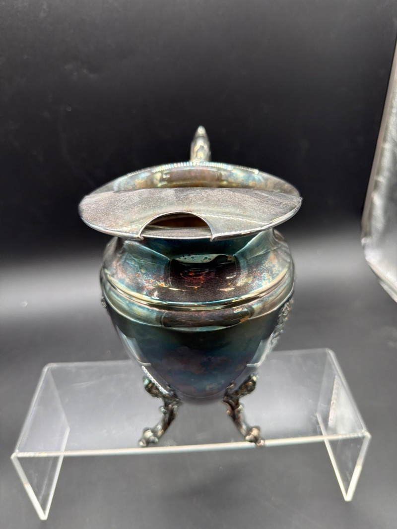 An elegant collection of vintage serving and tea-time essentials. This lot brings together the craftsmanship of Mid-Century Italian woodwork and the timeless prestige of English stoneware. The lot includes: Mid-Century Italian Serving Tray: A stunning oval wooden tray featuring intricate marquetry inlay. Wedgwood Jasperware Pieces: three small pieces of Wedgwood Jasperware. Featuring the signature matte finish and neoclassical white bas-relief figures, these are timeless collector's items. Silver-Plated Pitcher: A classic, polished silver-plated pitcher, perfect for water, cream, or as a decorative floral vase. Expanding Silver Plate Hot Plate: A clever and functional vintage "trivet." This silver-plated piece expands to accommodate various dish sizes, protecting your tabletop in style. Condition: Good Vintage Condition. The wood inlay on the tray is intact and vibrant. The Wedgwood pieces are free of chips or cracks. The silver-plated items show a bright finish with light, authentic patina that can be polished to a high shine. SHIPPABLE: Yes Please note: Shipping is charged separately from the auction. Once the auction invoice is paid, if you chose shipping, a second invoice for the exact shipping cost will be sent to the winner.Shipping