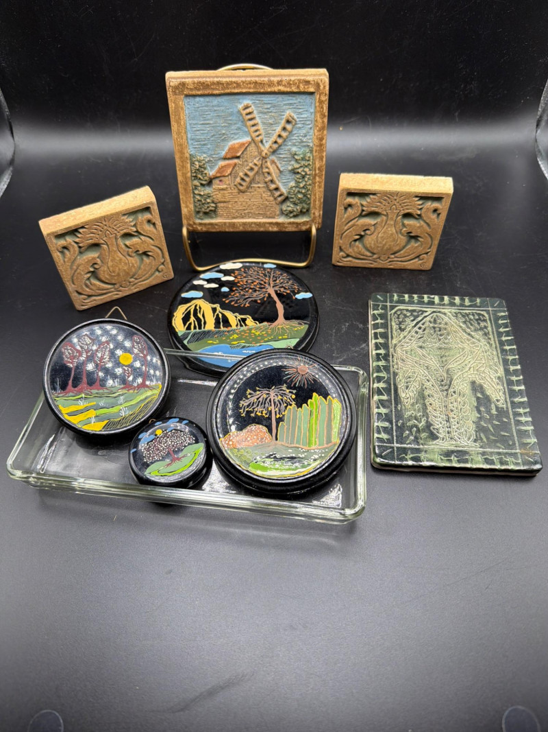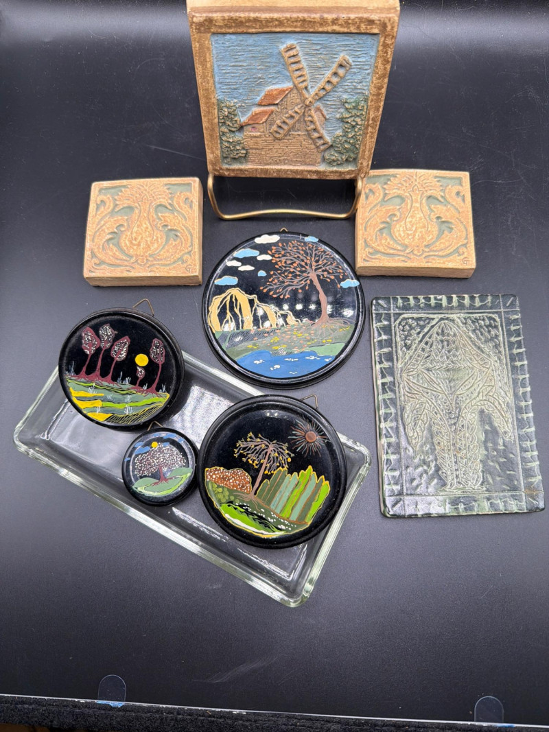 Lot # 90 - Antique Windmill Tile, Artisan Rounds & Glass Tray