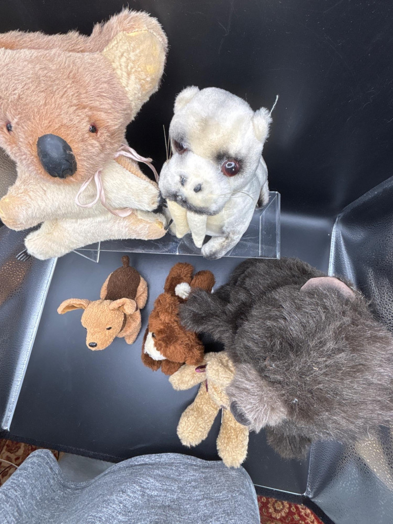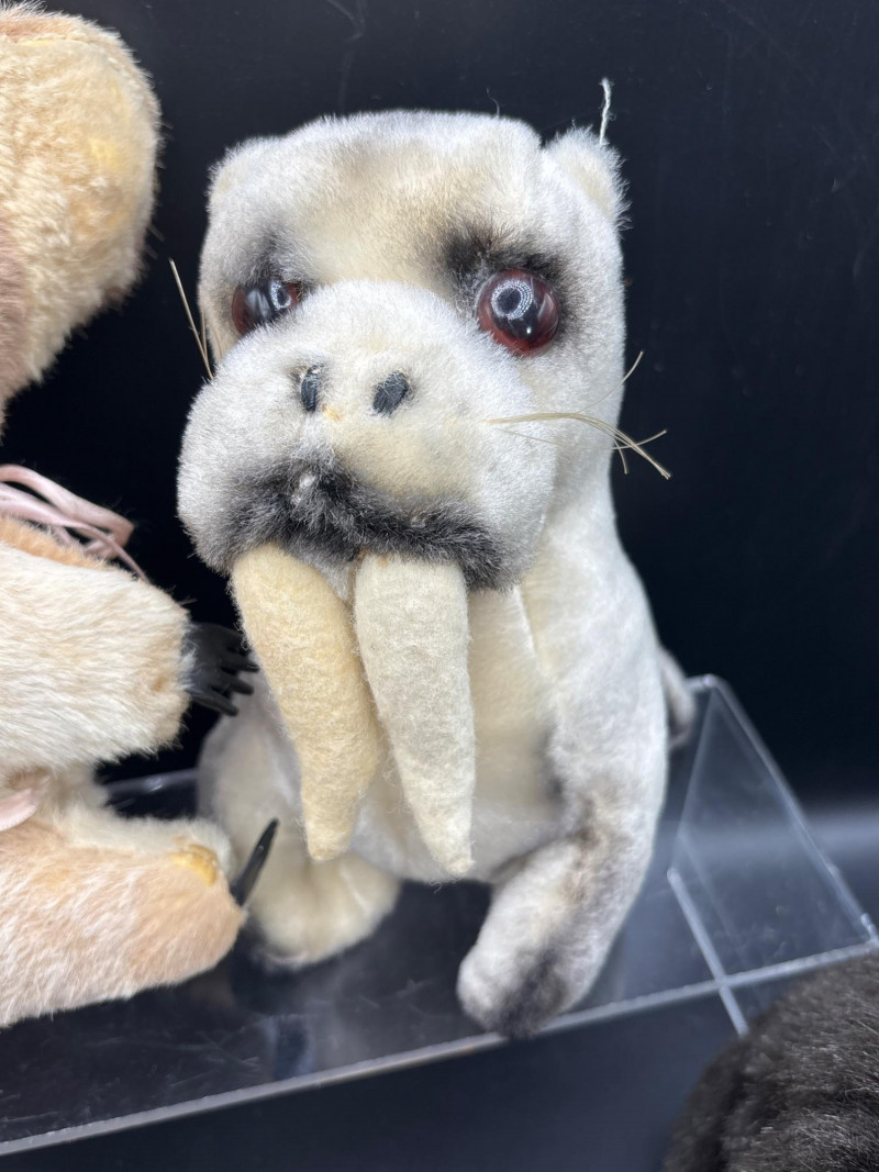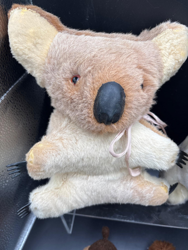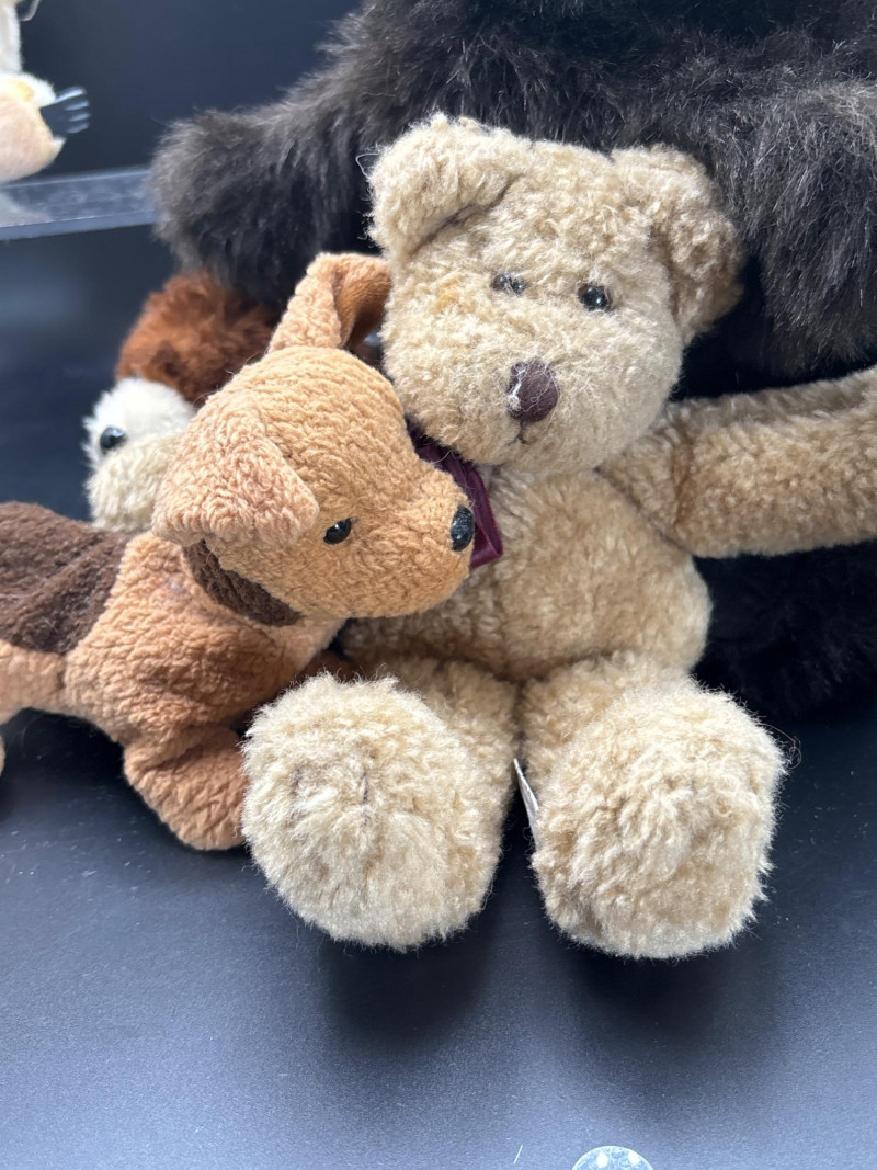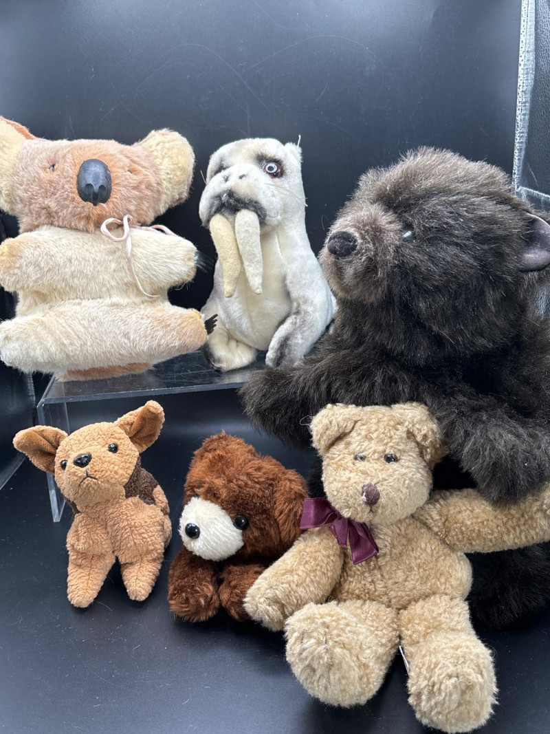 A premium 6-piece collection of vintage and designer plush toys. This diverse lot spans several decades of toy history, from 1960s international souvenirs to 1990s "Beanie Baby" fever. Perfect for a collector or as a nostalgic gift set. The collection includes: Boyds Bear "Bears in the Attic": A classic tan teddy featuring the signature velvet bow. A staple of 1980s/90s Americana decor. Vintage Australian Koala: A rare 1960s/70s souvenir. These were traditionally handmade using natural materials and feature a distinct soft rubber nose and claws. Ty Beanie Baby "Tuffy": An original 1996 release terrier with the iconic brown/tan spotted coat and floppy ears. Russ Berrie "Cuddles" Bear: A charming 1980s miniature teddy with contrasting white muzzle and ear detail. Large Shaggy Bear: A realistic, high-pile plush consistent with the artisan style of Folkmanis "Furry Folk" or high-end boutique brands. Artisan Walrus: A unique, realistically designed plush reminiscent of vintage artist-made creations. Condition: Good Vintage Condition. All plush items have been well-preserved. The Koala retains its vintage structural integrity, and the Ty Beanie Baby shows minimal wear. As with all vintage plush, light surface cleaning is recommended to refresh the fibers. SHIPPABLE: Yes Please note: Shipping is charged separately from the auction. Once the auction invoice is paid, if you chose shipping, a second invoice for the exact shipping cost will be sent to the winner.Shipping