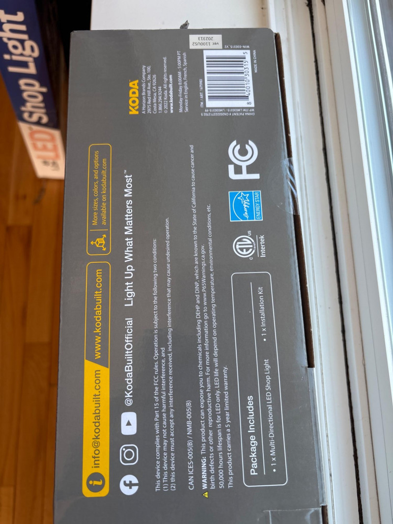 Professional-grade illumination for your workspace. This Koda multi-directional LED shop light is a powerhouse of brightness, delivering a staggering 8000 lumens of cool, clear light. Key Features: Adjustable Panels: Features multi-directional LED panels that can be angled and tilted, allowing you to focus light exactly where you need it most. Ultra-Bright Output: 8000 lumens provide massive coverage, far exceeding standard shop lights. Energy Efficient: High-performance LED technology provides maximum brightness with low energy consumption and a long lifespan. Easy Installation: Designed for simple "plug-and-play" or suspension mounting (see box for specific hardware). New in Box (NIB): This unit appears to be in its original factory packaging, unused and ready for installation. Condition: New in Box. The exterior packaging is crisp and intact. Item is sold as an unused, boxed unit. SHIPPABLE: Yes Please note: Shipping is charged separately from the auction. Once the auction invoice is paid, if you chose shipping, a second invoice for the exact shipping cost will be sent to the winner. Shipping