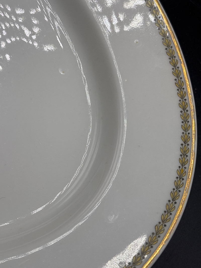 This is an exquisite Haviland and Co. Limoges France oval serving platter in the sophisticated Albany pattern (also known as Schleiger 107A). Crafted in the world-renowned porcelain centers of Limoges, France, this discontinued fine china piece is a high-end addition to any collection or formal table setting. The platter features a striking Greek Key motif in yellow and black, accented with elegant gold trim. This is a rare opportunity to own a piece of French porcelain history. Whether you are completing a set or looking for a standalone statement piece, this platter offers the durability and prestige of Haviland craftsmanship. Manufacturer: Haviland and Co. Origin: Limoges, France Pattern: Albany (Schleiger 107A) Design: Greek Key in Yellow and Black with Gold Trim Material: Fine Porcelain China Status: Discontinued / Highly Collectible SHIPPABLE: Yes