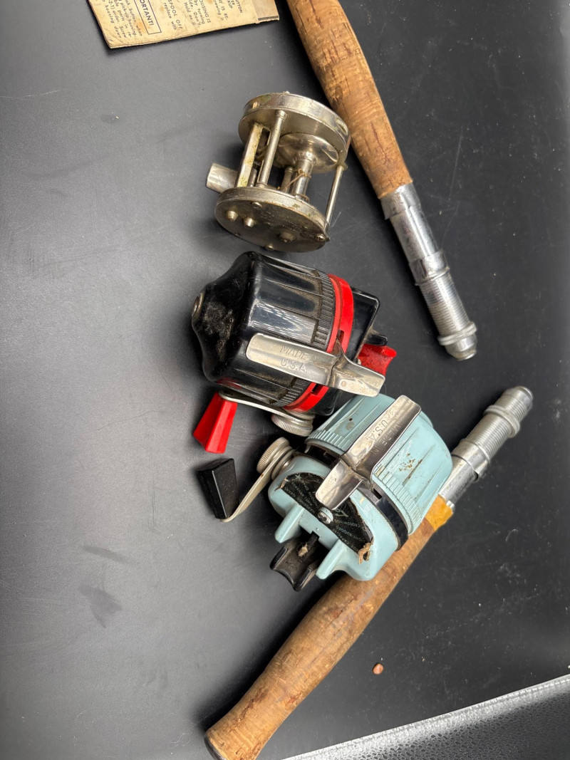 Lot # 125 - Vintage 3pc Fishing Reels & 2pc Rod Handles | Shakespeare, Garcia