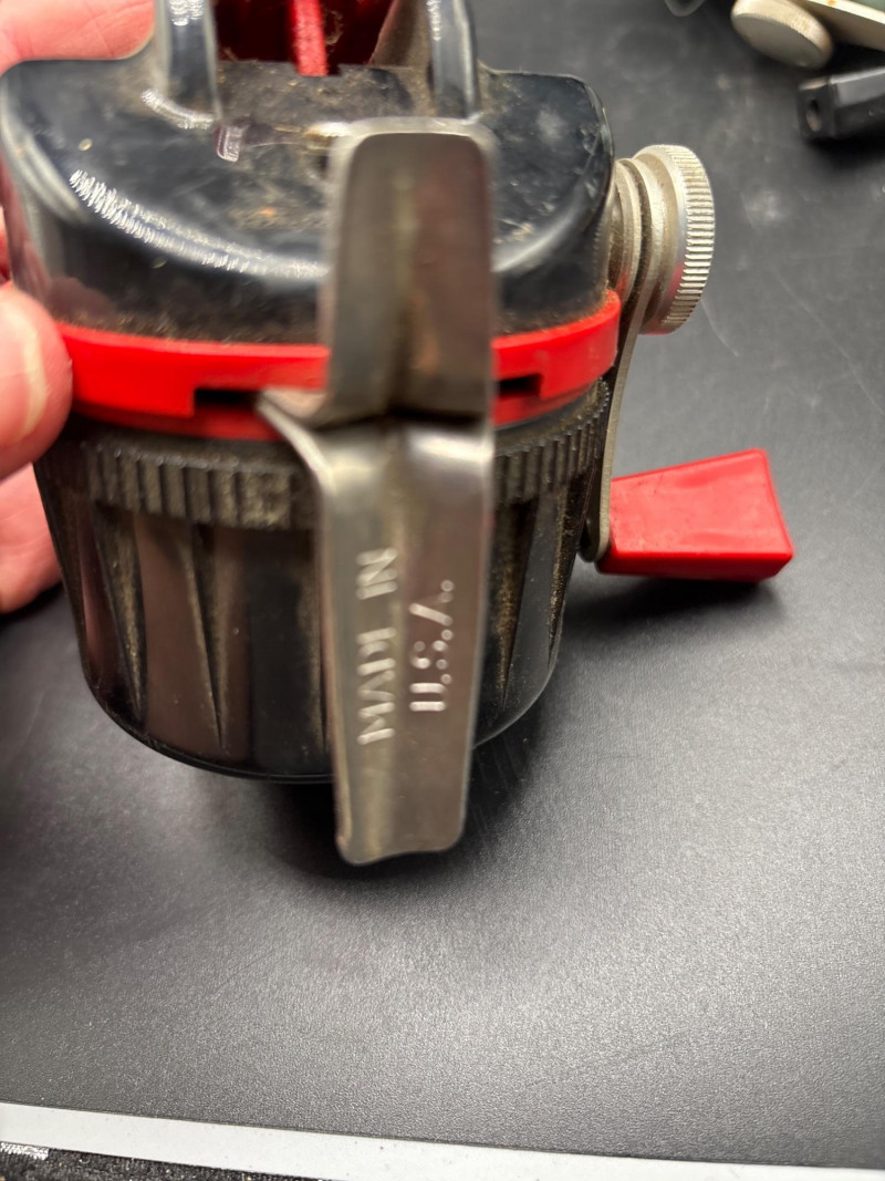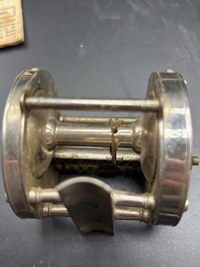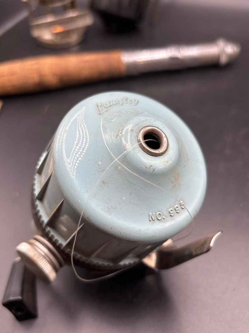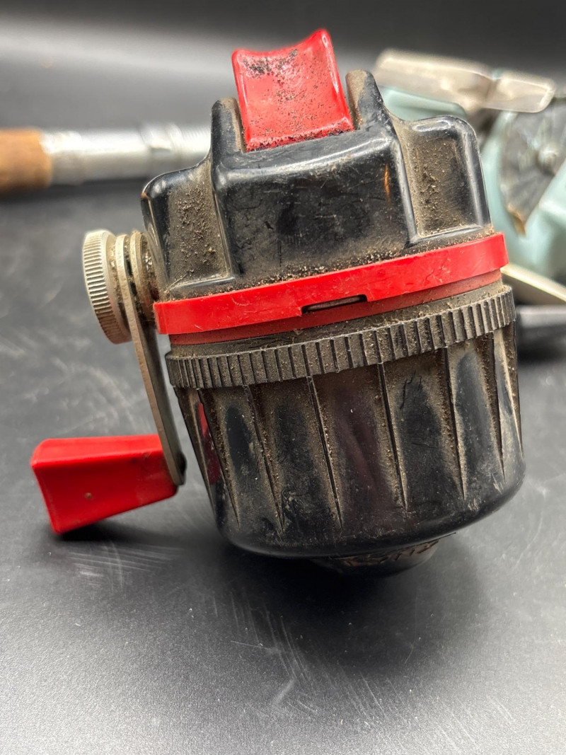 This lot features a prime collection of mid-century angling gear, perfect for collectors of vintage tackle or those looking for reliable, classic equipment. This set includes three distinct reels and two professional-grade rod handles, representing the durable engineering of the 1940s through the 1960s. The 3 Fishing Reels: Vintage Baitcasting Reel (Silver/Metal): A classic "knuckle buster" design, reminiscent of the Shakespeare "Thrifty" or Pflueger models. These were the standard for precision bass fishing mid-century. Garcia Abu-Matic Spincast Reel (Black & Red): A highly recognizable 170 series or Shakespeare 201 style. Known for its "backlash-free" operation and ease of use. South Bend Spincast Reel (Teal/Light Blue): A standout vintage piece consistent with the South Bend Model 77 or 88. Its vibrant color makes it a great display or functional piece. The 2 Rod Butt Sections: These authentic cork grip handles feature heavy-duty metal reel seats. Includes one "pistol grip" style (ideal for baitcasting) and one straight grip, typically paired with the high-performance fiberglass blanks of that era. Whether you're restoring a vintage setup or adding to a display, these pieces offer the heavy-duty construction and retro aesthetic that modern gear can't replicate. SHIPPABLE: Yes