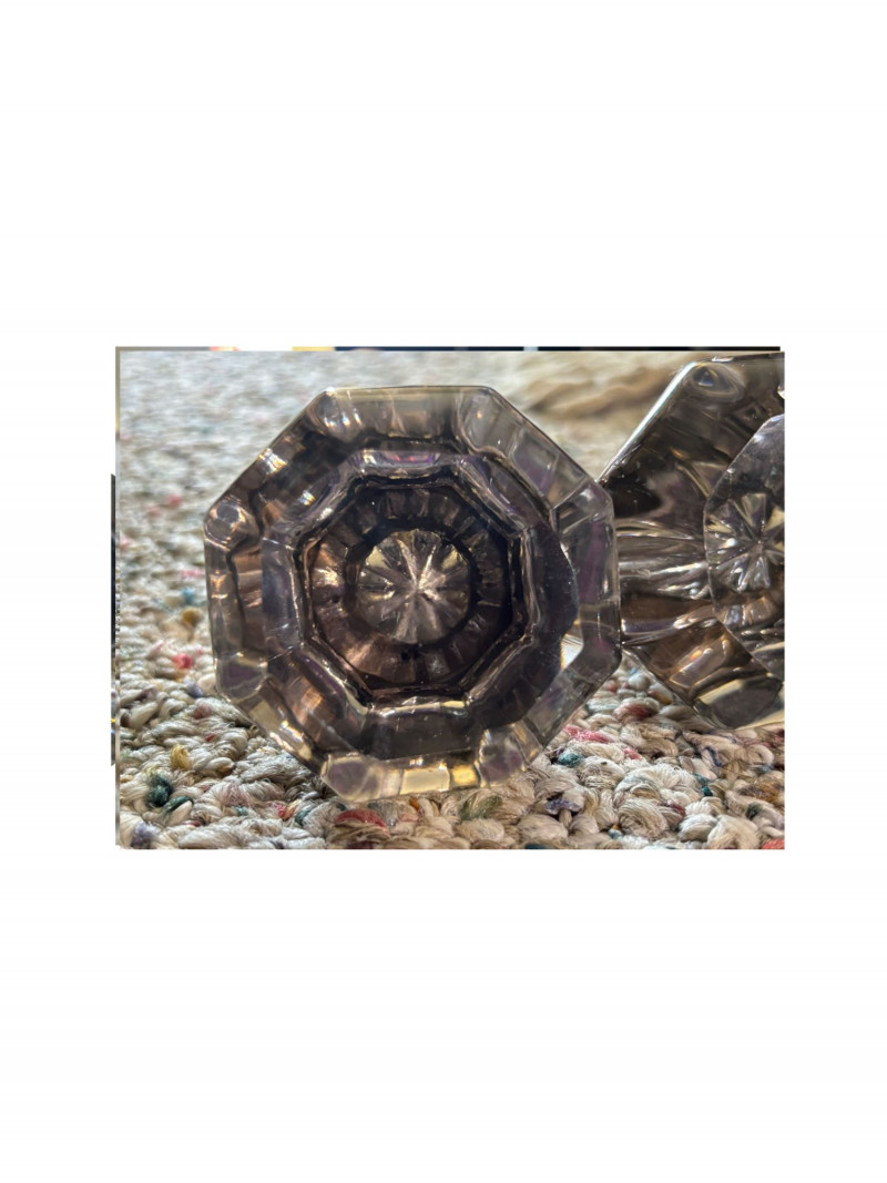 Elevate your home’s hardware with this exquisite 6-piece set of vintage cut-crystal style door knobs. These are not your standard glass pulls; each knob in this lot features a deep, multi-faceted cut designed specifically to catch and refract light, casting brilliant patterns across your walls and floors. These authentic vintage pieces offer the heavy, substantial feel and "prism effect" that defines high-end historical hardware. They are the perfect architectural accent for a Victorian, Edwardian, or Colonial-style restoration, or as a luxury upgrade for a modern custom build. Lot Features: Brilliant Light Refraction: Each of the 6 knobs is precision-cut to maximize sparkle and clarity. Classic Octagonal Design: The timeless geometric shape provides a comfortable grip and a sophisticated, high-end aesthetic. Durable Vintage Quality: These knobs feature the thickness and weight of genuine aged glass, far superior to lightweight modern plastic imitations. Condition: Beautiful vintage condition. The facets remain sharp and clear, showing only the minor, authentic character marks consistent with their age. Whether you are finishing a full home restoration or looking for the perfect "jewelry" for your doors, this 6-piece lot provides matching brilliance and lasting quality. Quantity: 6 Cut-Crystal Style Knobs Material: Heavy Glass / Faceted Crystal-style Finish: Clear with aged metal shanks Application: Ideal for interior doors, cabinetry, or upcycled decor projects. SHIPPABLE: Yes Please note: Shipping is charged separately from the auction. Once the auction invoice is paid, if you chose shipping, a second invoice for the exact shipping cost will be sent to the winner. Combined shipping is available for winners of multiple shippable lots.