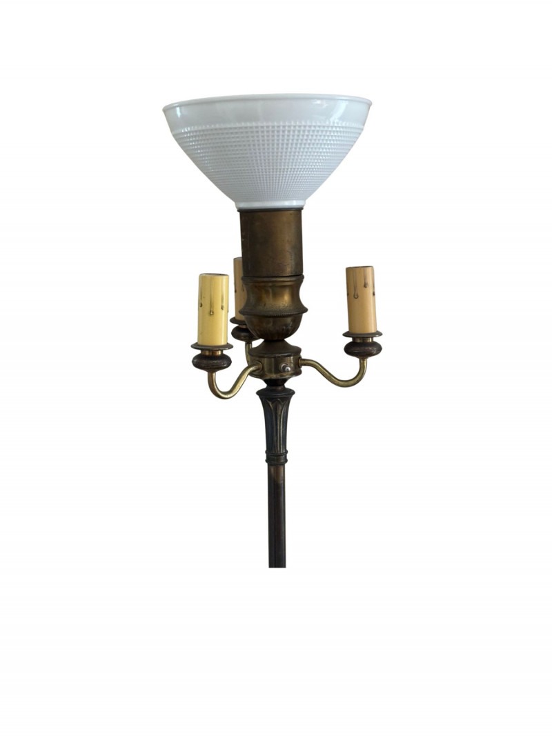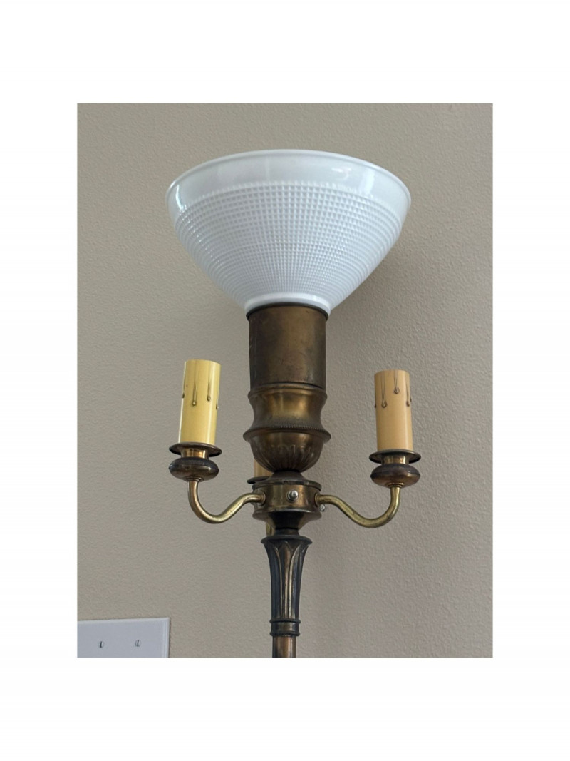 Lot # 149 - Vintage Torchiere Floor Lamp – Brass & Glass with Dual Side Lights