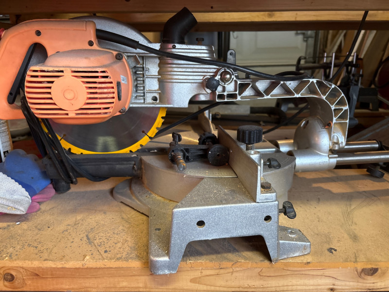 A solid compound miter saw is perfect for making accurate crosscuts and angled cuts in wood and trim. Ideal for woodworking, framing, and finish work, this saw is a staple for any shop or DIY setup. Key Features: Perfect for: Pre-owned. Turns on. Shows typical shop wear, including dust and signs of use. Please review the photos for full details. No shipping – local pickup only