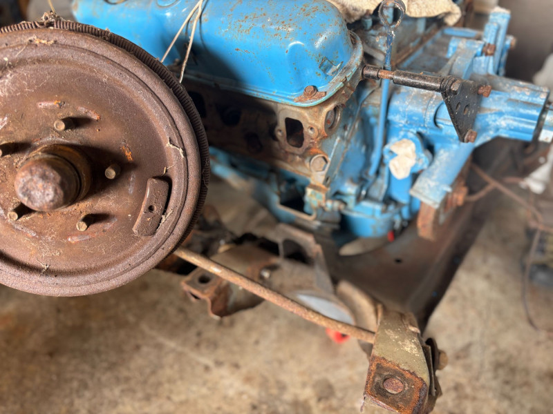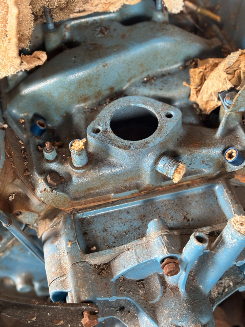 A vintage Mopar / Chrysler LA-series small block V8 engine, featuring casting number 2591915-2, commonly associated with mid-1960s small block engines (273 / early 318 era). This is a great candidate for restoration, rebuild, or parts use—ideal for classic Dodge and Plymouth applications. The engine appears partially assembled and includes visible components, including the intake mounting area, front accessories, and internal structure, as shown. Pre-owned. Untested. Shows heavy wear consistent with age and prior use, including surface rust, residue, and age-related wear. Sold as a core / rebuild / parts engine. Please review photos carefully for details and included components. No shipping – local pickup only