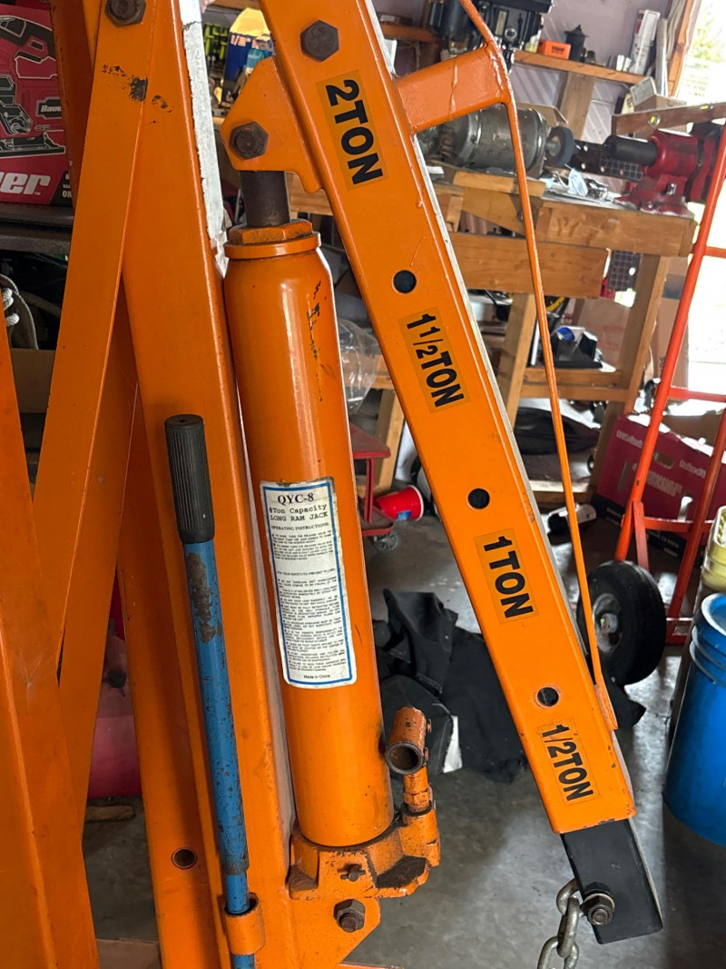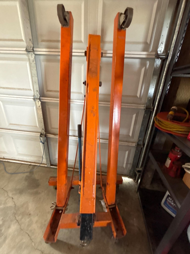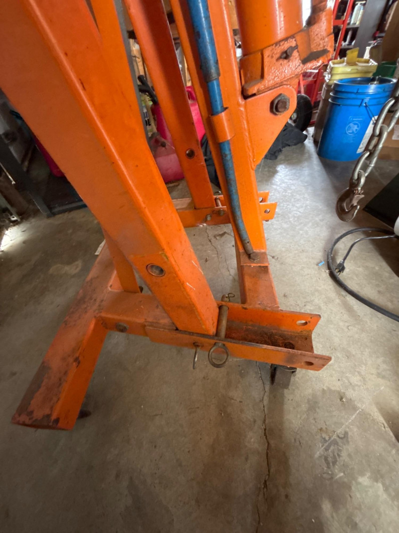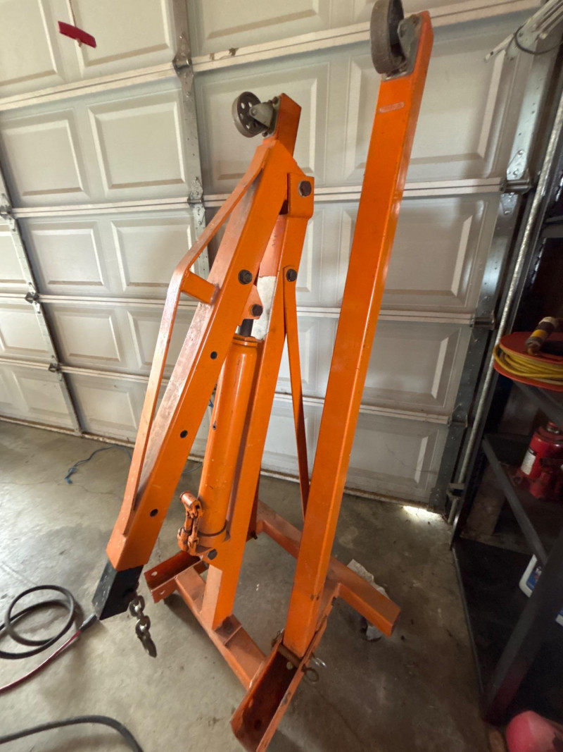 Heavy-duty engine hoist/shop crane designed for lifting engines, transmissions, and other heavy components. A must-have for garage work, restorations, or shop use. This unit features adjustable boom positions for multiple lifting capacities and includes a hydraulic ram jack for smooth operation. Key Features: Perfect for: Pre-owned. Shows typical shop wear, including scuffs, scratches, and paint wear. Untested under load, but appears complete. Sold as-is. Please review photos for full condition details. No shipping – local pickup only