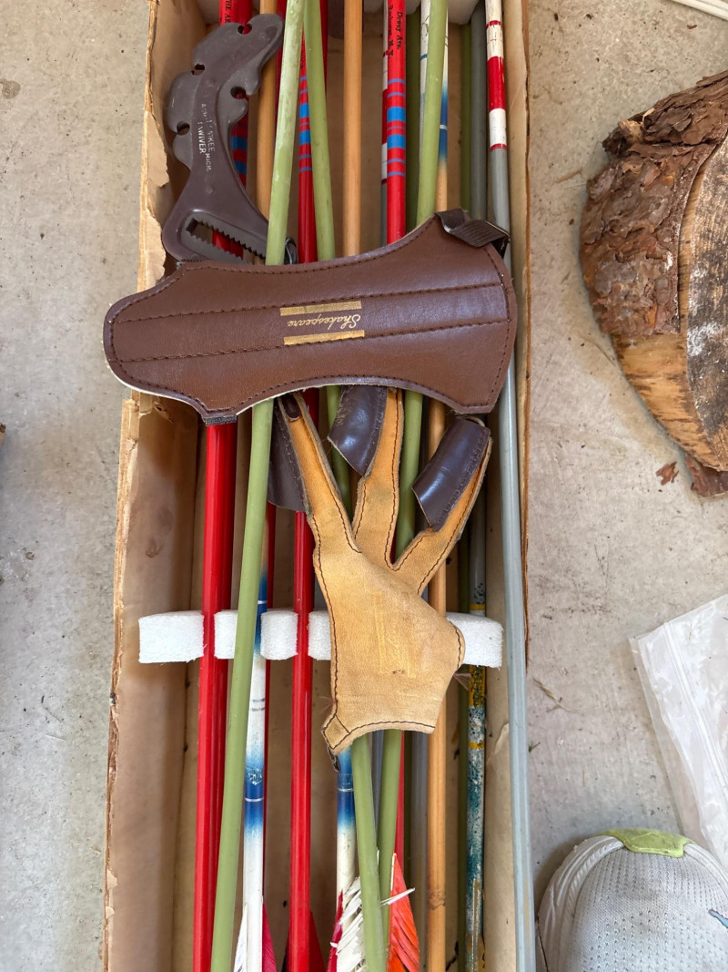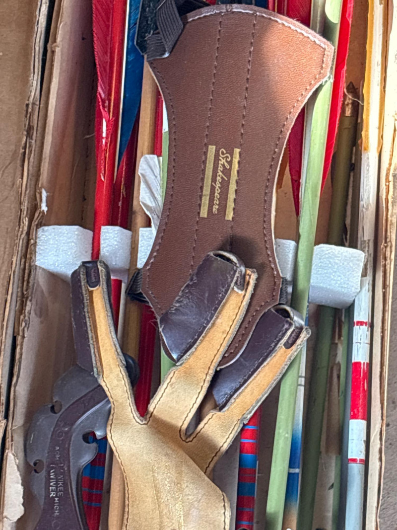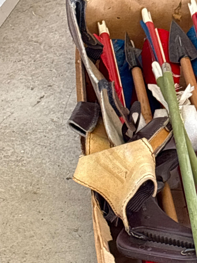 A fantastic estate sale find for archery enthusiasts and collectors—this vintage Sierra Model X18 arrow set comes with a mix of arrows and broadheads, all packed with old-school character. Included are multiple arrows with colorful fletching and several broadhead tips, making this a great mix for display, collecting, or parts. The original Sierra box adds to the appeal, featuring classic branding and that unmistakable vintage hunting aesthetic. Whether you’re a collector of archery gear, a hunter who appreciates vintage equipment, or someone looking for unique décor, this lot delivers both history and visual interest. Perfect for: This is the kind of estate sale lot where you get a little bit of everything—authentic, interesting, and full of character. Vintage condition with wear consistent with age and use. Some arrows and tips show signs of use, storage wear, or aging. Box shows wear. Please review all photos carefully for details and contents. Yes – shipping available. Combine shipping offered when possible.