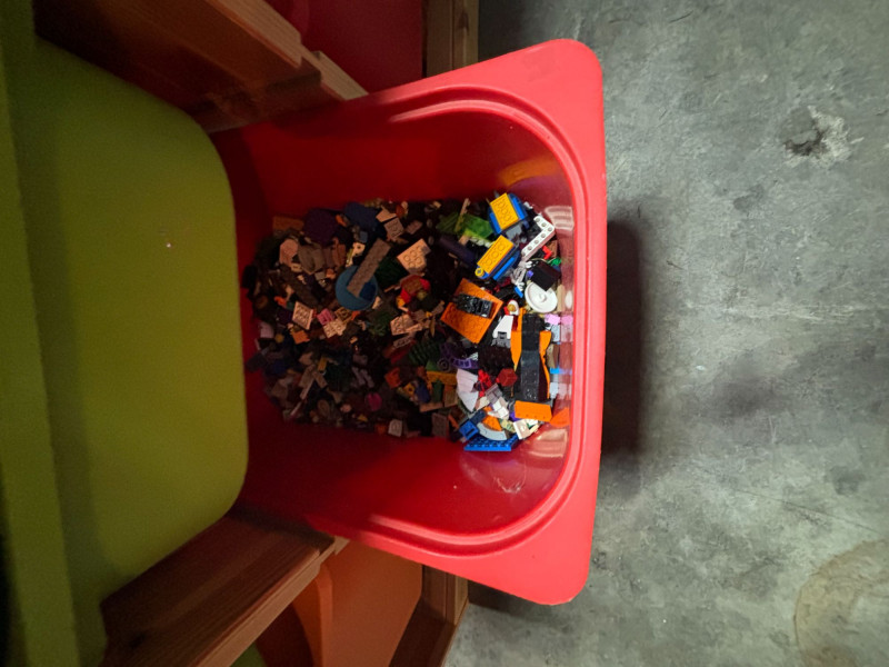 No Shipping IKEA storage unit converted into a functional LEGO building table. Features a large LEGO baseplate building surface on top and multiple pull-out plastic bins for organized storage underneath. Includes approximately ½ bin of assorted LEGO bricks and pieces (mixed colors and sizes as shown). Great starter set or addition to an existing collection. The table is sturdy and in good used condition with normal wear from use. Bins slide in and out easily for convenient cleanup and storage. Perfect for playrooms, classrooms, or creative spaces. Selling as-is. Please review photos for condition details.