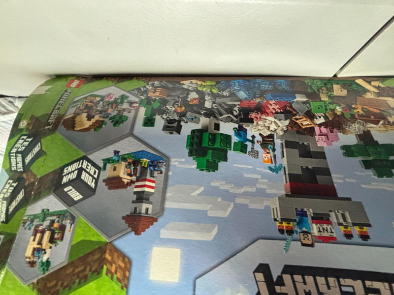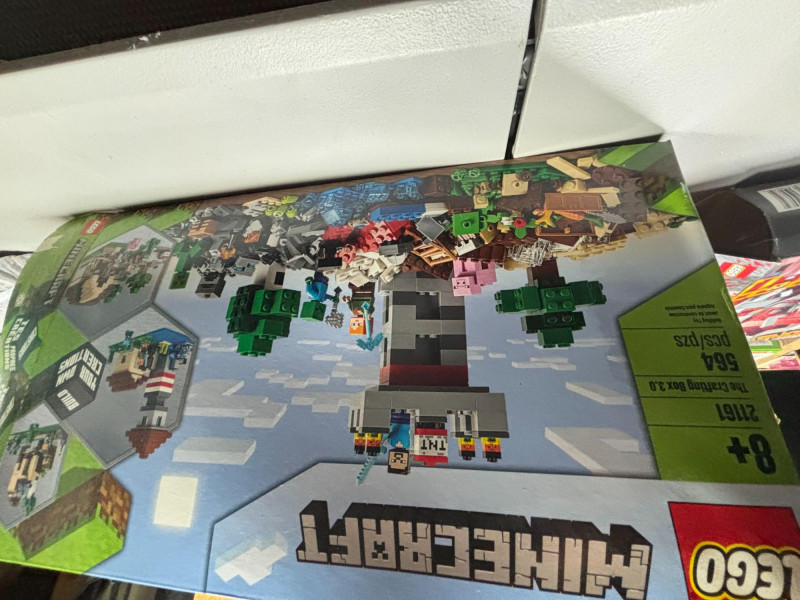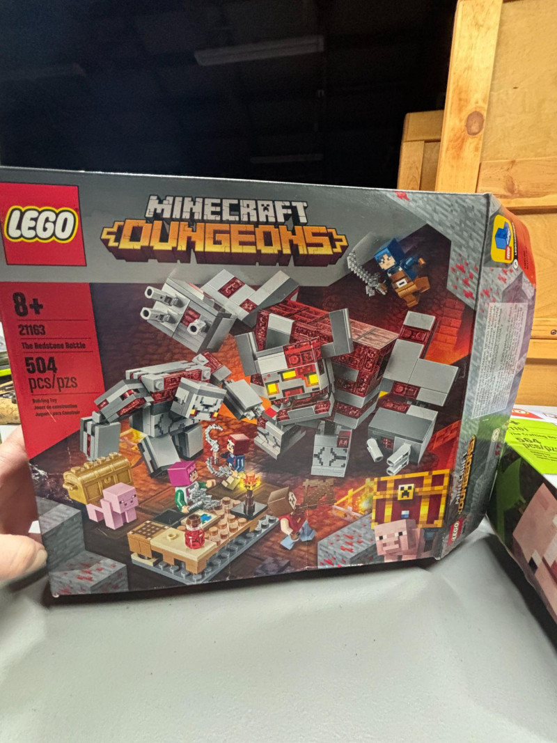 CAN BE SHIPPED The lot includes two LEGO Minecraft sets: 21161 – The Crafting Box 3.0 (564 pieces) 21163 – The Redstone Battle (504 pieces) Both boxes have been opened. One set appears complete with all internal plastic bags still sealed/unopened. The second set has one internal plastic bag opened, with pieces still inside the box. Boxes show light shelf wear and minor corner wear consistent with storage. Great opportunity to pick up two popular Minecraft sets at a value. Sold as open-box sets. Please review photos carefully for condition details. Selling as-is.