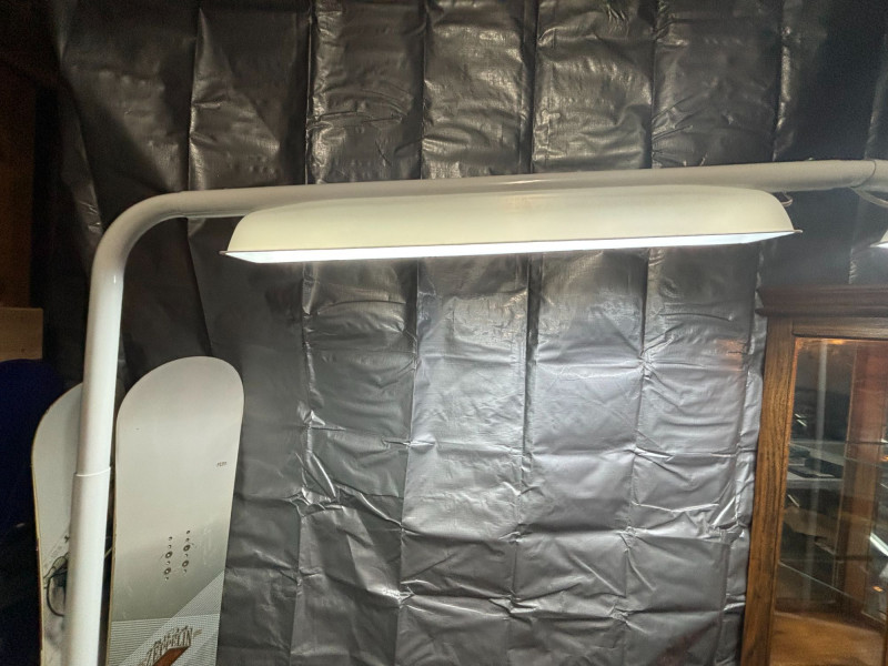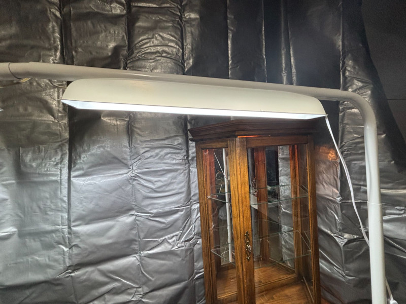 NO SHIPPING Grace Company quilting light frame featuring dual overhead LED light bars mounted on a sturdy white frame. Designed to provide bright, even lighting for quilting frames, sewing tables, crafting stations, or large workspaces. Light is mounted on a freestanding frame and includes a power cord with an inline switch. Provides wide coverage illumination—ideal for reducing shadows while quilting or detailed craft work. Previously used and in good condition. Shows light cosmetic wear consistent with normal use. Powers on and lights function as shown. Click here to read more from the Grace Company, https://graceframe.com/en/product/luminess-led-light/luminess-small-model-up-to-6 Great addition for quilters, sewists, or anyone needing strong overhead task lighting. Selling as-is. Please review photos for condition details.