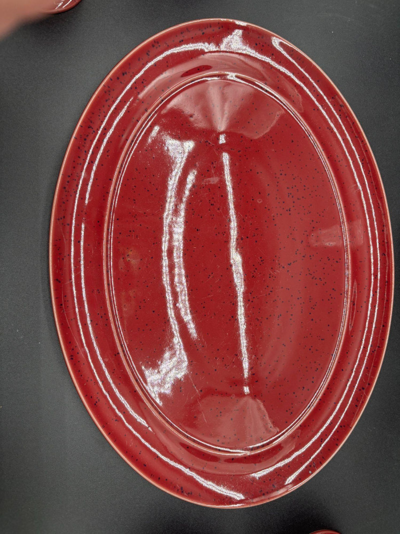 • Red speckled oval serving platter
