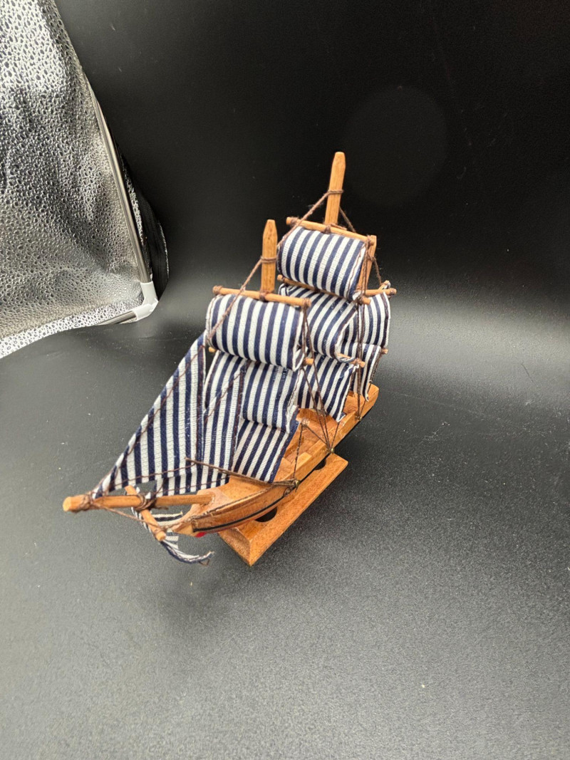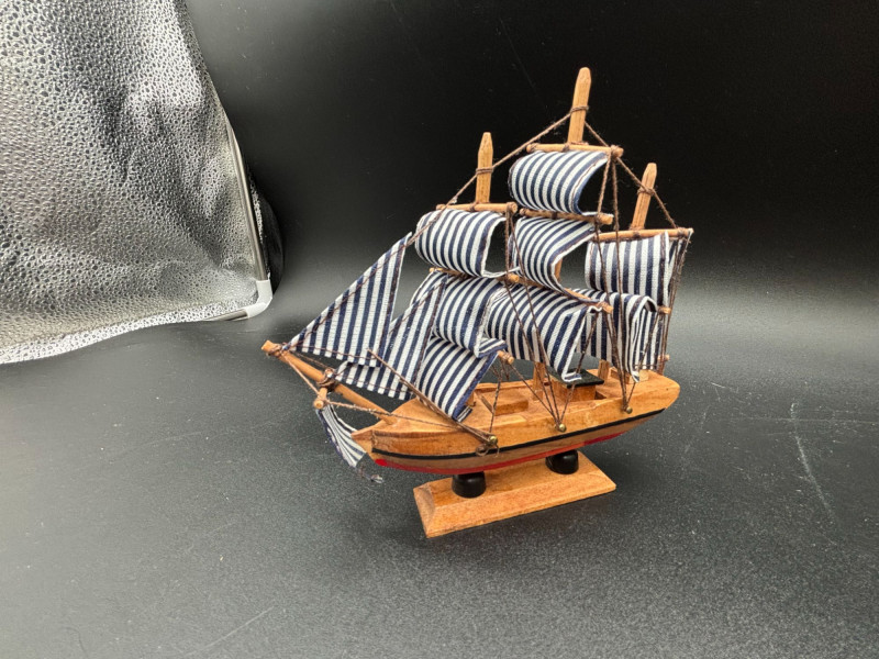• Medium wooden striped-sail ship