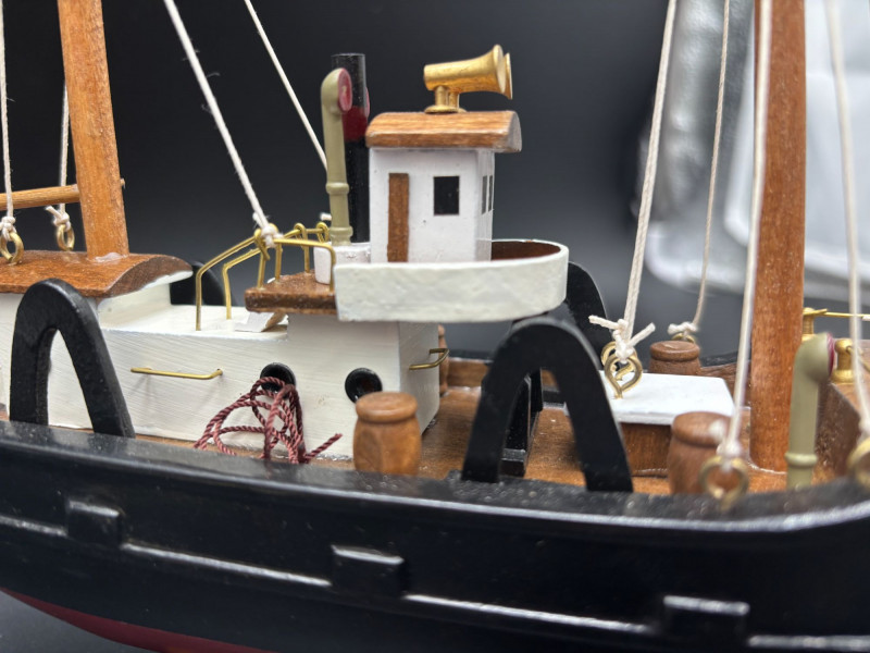 • Wooden tugboat-style working vessel model