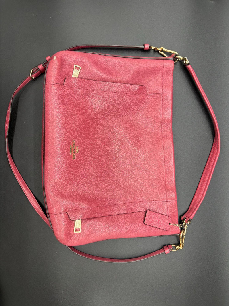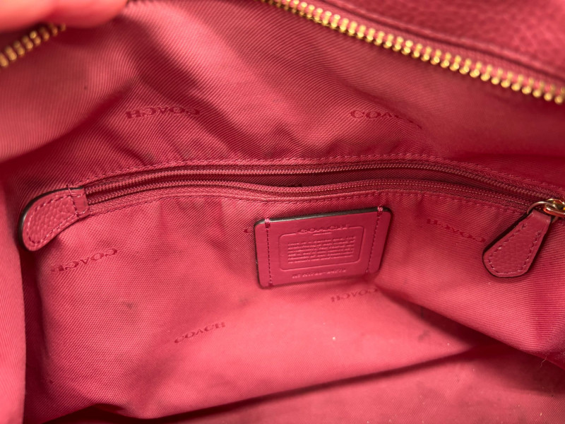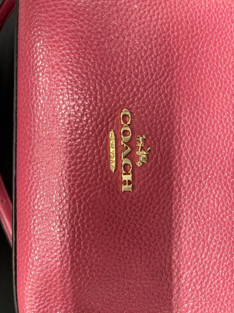 CAN BE SHIPPED Beautiful Coach shoulder bag crafted in soft pebbled pink leather with gold-tone hardware. Features a clean, modern silhouette with a front slip pocket and a zip-top closure. Adjustable shoulder strap for comfortable everyday wear. Interior includes a zip pocket and slip compartments. Coach creed patch and serial number present inside. Condition: Classic Coach quality with a vibrant pop of color.