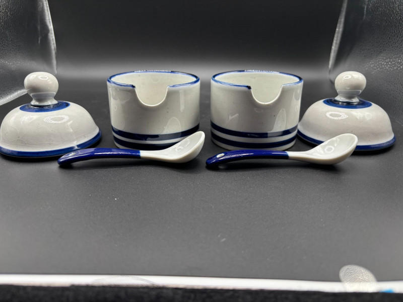 Lot # 19 - Dansk Blue Mesa Stoneware Condiment Set – 3 Pc Lot 📦
