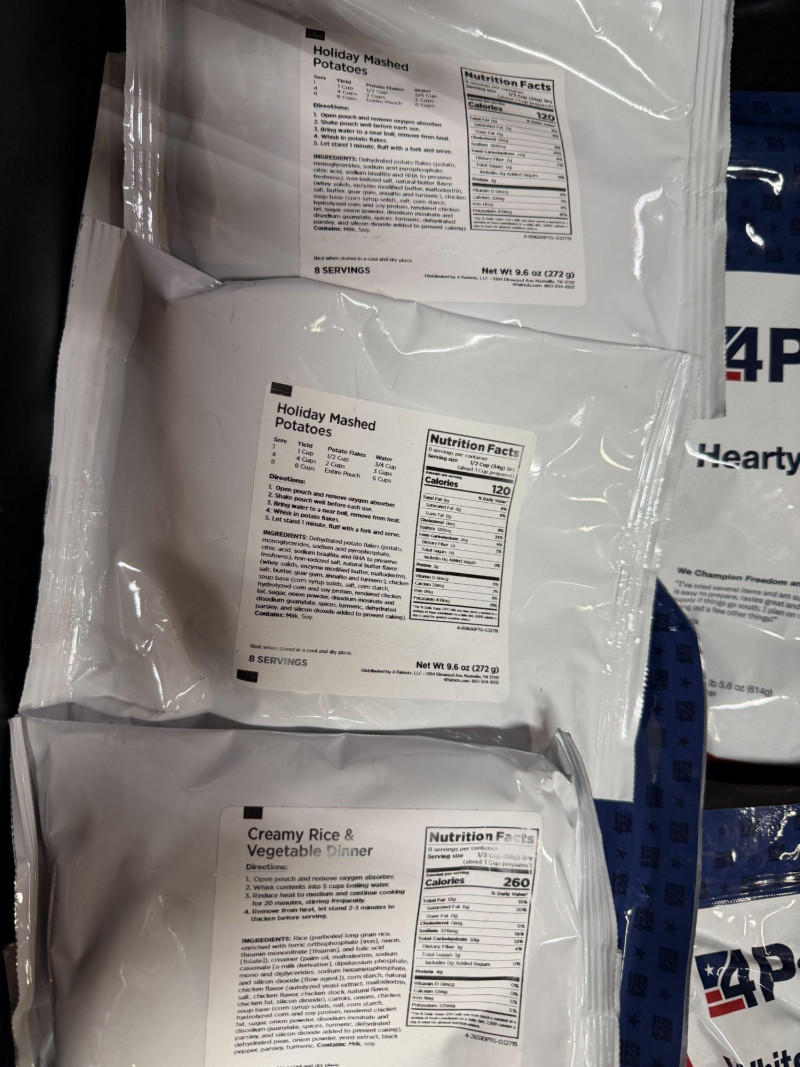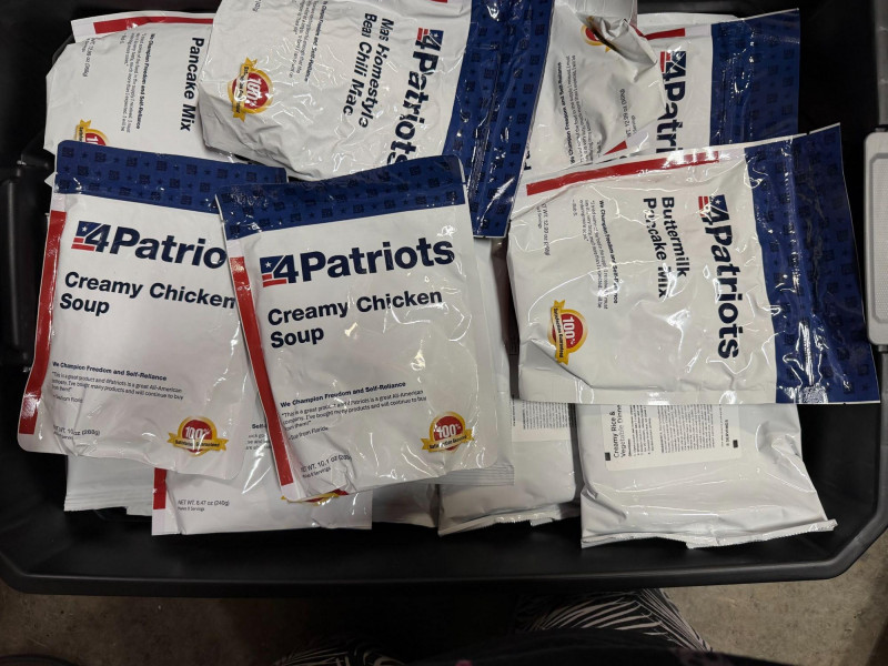 🥫🍲 Secure a two 3-Month Emergency Food Supply! 🍲🥫 A substantial preparedness food lot featuring two tubs of Patriot emergency food supplies, each containing approximately 35 sealed meal packages. These long-term storage foods are designed for emergency preparedness, camping, or backup pantry use. Each tub represents roughly a 3-month food supply, offering a variety of meals and staples such as soups, grains, pasta dishes, breakfast items, and drink mixes. The packages are sealed for long-term storage and organized in durable plastic tubs for easy access and storage. Preparedness food supplies like this are commonly kept for emergency planning, power outages, natural disasters, camping trips, or off-grid situations. Having shelf-stable food stored and ready can provide peace of mind during unexpected events. Details: Please review photos to see the exact food varieties included. Sealed packaged emergency food stored in plastic tubs. Packages appear unopened. Please review photos for details. Shipping available. WILL BE HEAVY Combined shipping offered for multiple auction wins whenever possible. Long-term emergency food supplies are designed for extended shelf life and easy preparation, often requiring only water. Preparedness food systems are commonly used for emergency kits, survival planning, camping, and long-term food storage programs.