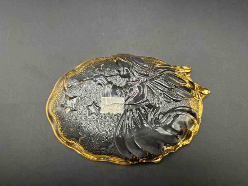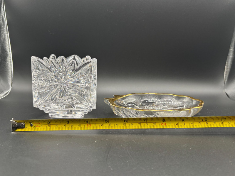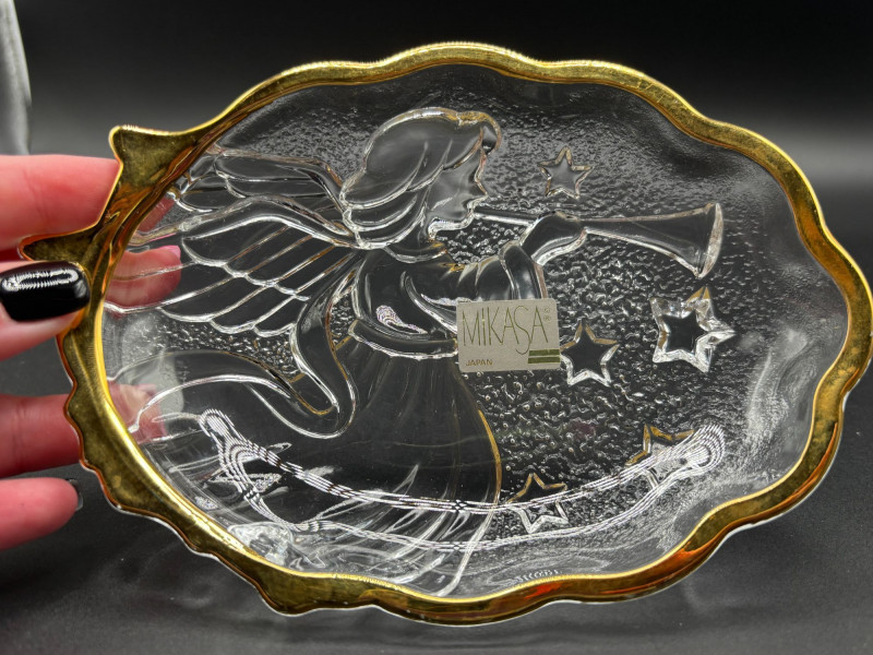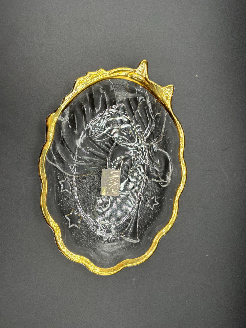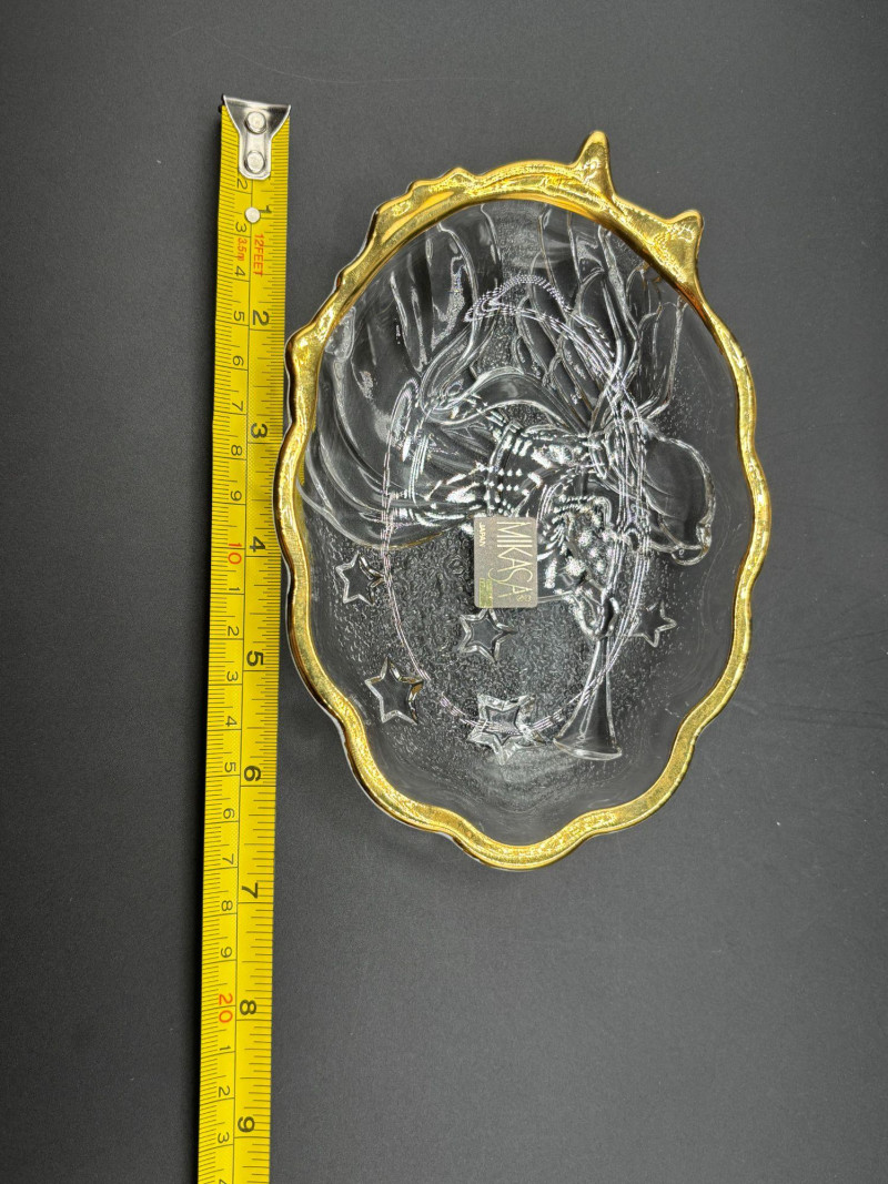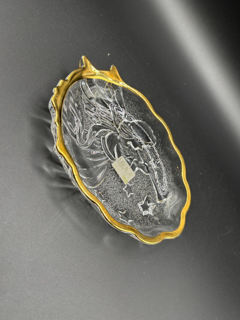 π Mikasa crystal dish with gold rim and etched design
