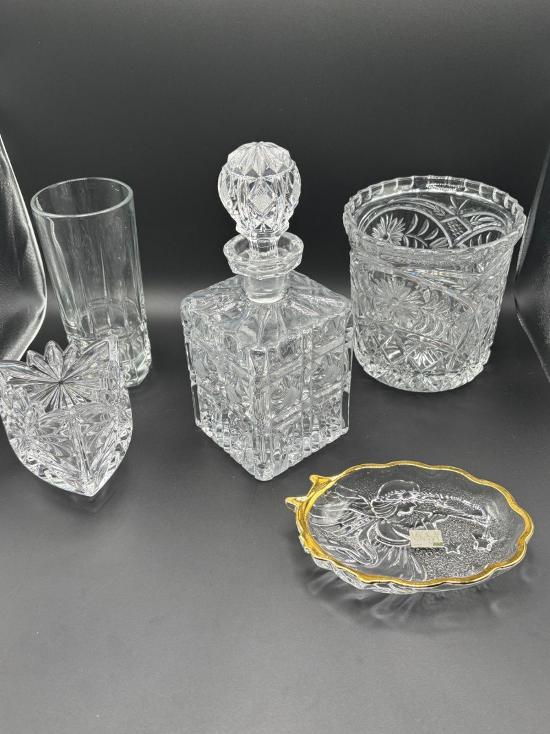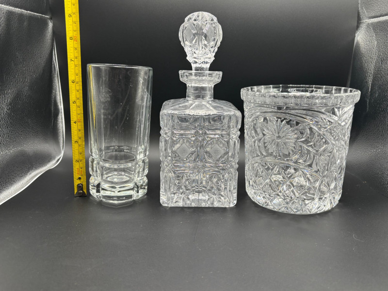 β¨ Elegant Crystal & Glass Entertaining Collection β¨ This beautiful mixed lot features a sparkling assortment of crystal and glass pieces perfect for your bar cart, entertaining space, or display cabinet. Included in this lot: π₯ Heavy cut crystal decanter with faceted stopper The crystal pieces feature deep, intricate cuts that reflect light beautifully and have a substantial, quality feel. The decanter stopper is especially eye-catching and adds classic elegance. Please note: Condition appears very good with no obvious major chips or cracks observed. Please review all photos carefully for complete details. π¦ Shippable. π We do our best to accurately describe items and disclose any visible condition issues; however, all items are sold as-is, where-is. Please review all photos carefully and ask any questions prior to bidding. Donβt miss this elegant collection β perfect for entertaining, gifting, or adding sparkle to your home!