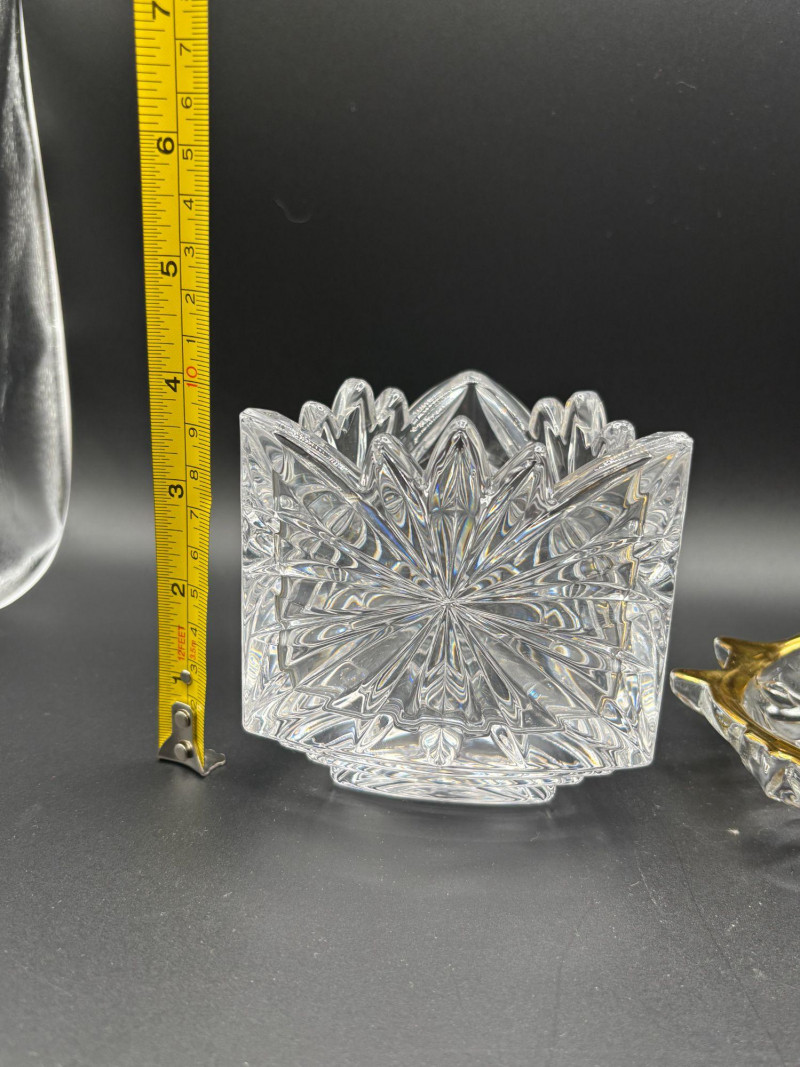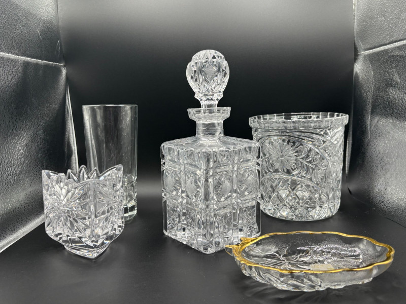 Lot # 29 - Crystal Decanter Barware Lot w/ Votive & Gold Dish