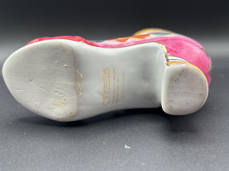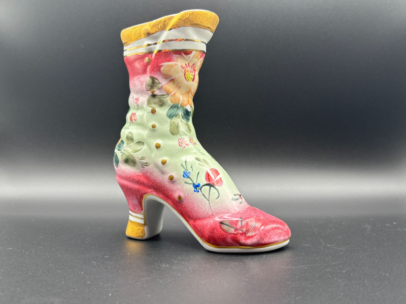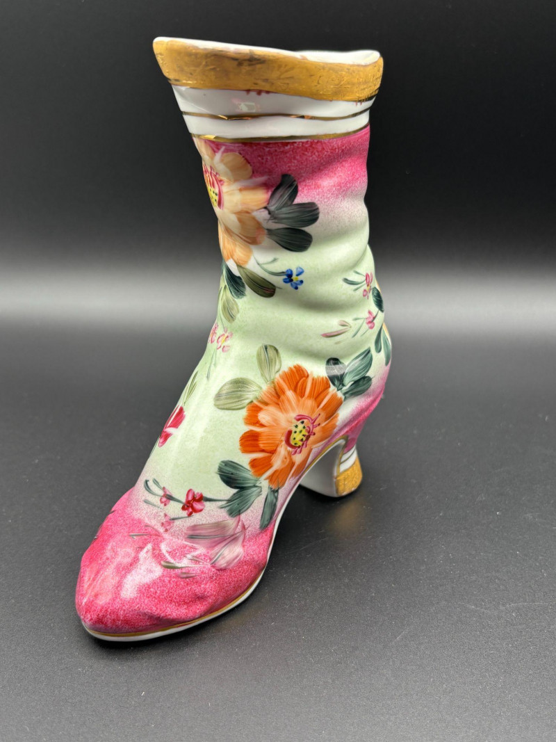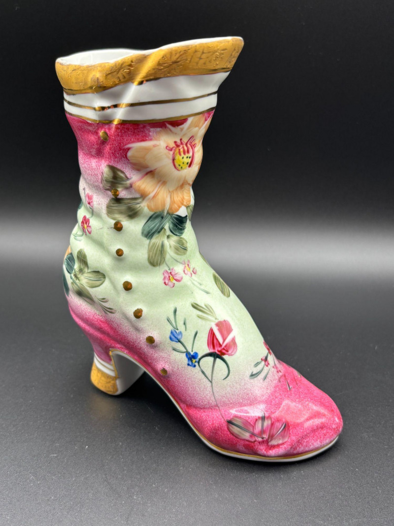 👠✨ Whimsical Vintage Shoe Collectible Lot ✨👠 Step into charm and elegance with this delightful collection of miniature shoes and a stunning porcelain boot! This unique lot includes: 👢 Beautiful porcelain decorative boot marked “Formalities by Baum Bros – Made in China” (for decorative use only) featuring hand-painted florals, soft pink and green tones, and gold accents. The porcelain boot makes a statement piece — perfect for display, holding dried florals, or as part of a shoe-themed collection. The smaller shoes add playful vintage charm and would look wonderful displayed together in a curio cabinet, on a vanity, or in a boutique-style décor setting. Condition: Pre-owned vintage condition. Some minor wear consistent with age, including light surface wear and small imperfections. Please review all photos carefully for condition details. 📦 Shippable. 📌 We do our best to accurately describe items and disclose any visible condition issues; however, all items are sold as-is, where-is. Please review all photos carefully and ask any questions prior to bidding. A fun, feminine, and conversation-starting collection — perfect for collectors of miniatures, fashion-themed décor, or vintage display pieces!