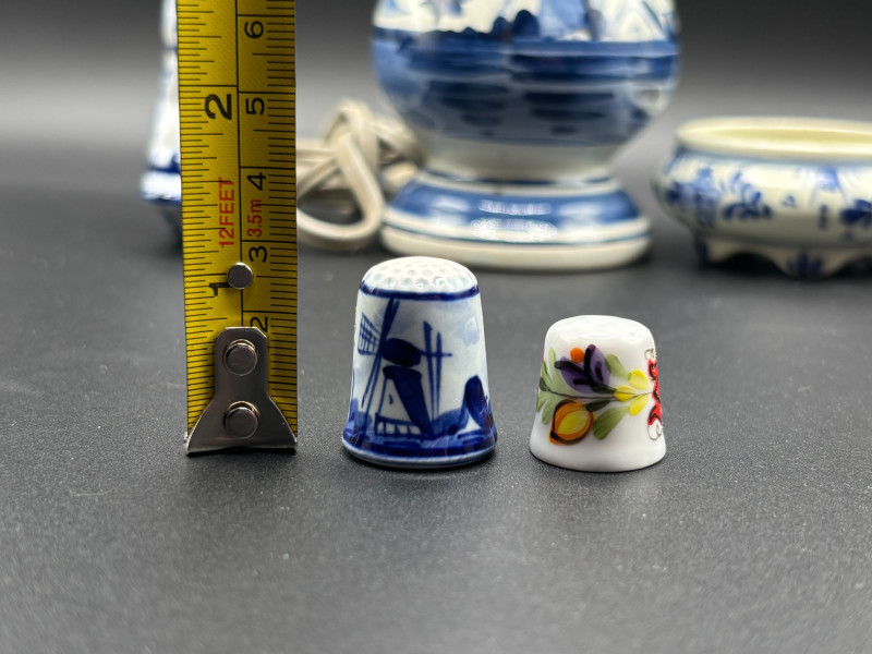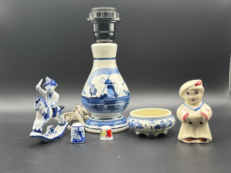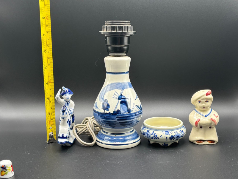 πβ Vintage Delft & Americana Collectible Lot βπ A charming mix of Dutch-inspired dΓ©cor and classic American pottery β perfect for collectors and vintage lovers alike! This lot includes: π‘ Delft Blue Table Lamp β Vintage Shawnee Pottery Sailor Boy Salt or Pepper Shaker π΄ Delft-Style Man on Rocking Horse Figurine πΈ Small Delft-Style Footed Bowl π§΅ Two Collectible Thimbles Condition: Pre-owned vintage condition with typical wear consistent with age. The lamp has not been tested. Minor surface wear may be present. Please review all photos for measurements and condition details. π¦ Shippable. π We do our best to accurately describe items and disclose any visible condition issues; however, all items are sold as-is, where-is. Please review all photos carefully and ask any questions before bidding. A fun and eclectic vintage grouping combining Dutch charm with classic Ohio pottery history!