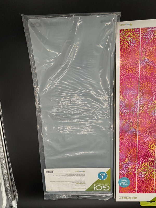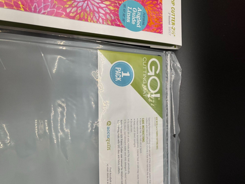 CAN BE SHIPPED AccuQuilt GO! fabric-cutting accessories offered as a single lot. Includes: GO! Strip Cutter 2½" Die (55017) – Package opened, but die appears unused and in excellent condition. GO! 10" x 24" Cutting Mat – New and factory sealed in original packaging. The 2½" strip cutter die is designed to cut accurate fabric strips quickly and efficiently and is ideal for quilting projects, binding, and strip piecing. Great opportunity to add to your AccuQuilt GO! system at auction.