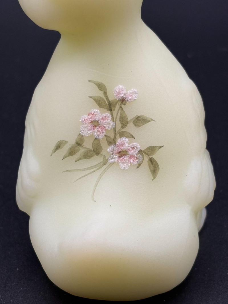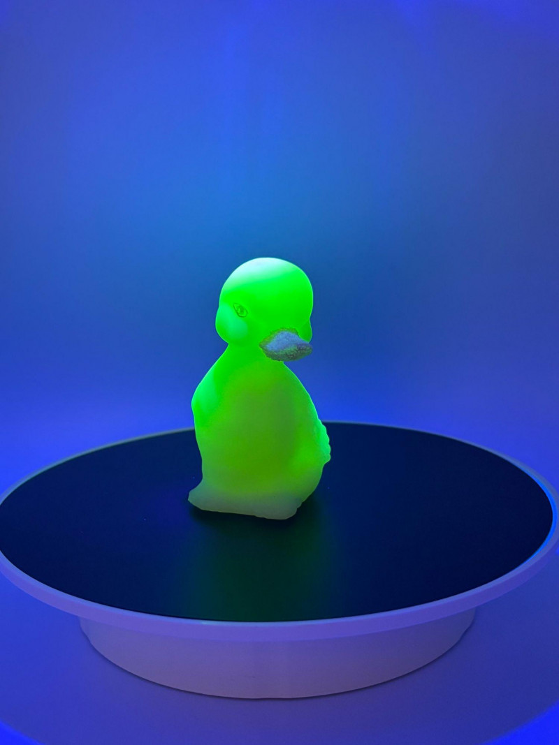 💚🦆 GLOWING URANIUM GLASS – FENTON SIGNED 🦆💚 This charming little duck isn’t just adorable… it GLOWS! Under UV / black light, this piece lights up a vivid neon green — confirming it is uranium glass. A must-have for uranium collectors and glow display enthusiasts! ✨ Details: This sweet duck features delicate hand-painted flowers and a softly textured beak, giving it that classic Fenton charm. When placed under blacklight, it transforms into a brilliant glowing display piece — perfect for cabinets, curio shelves, or uranium collections. Condition: Pre-owned vintage condition. No major cracks or chips noted. Hand-painted detail intact. Please review all photos carefully for exact condition and measurements. 📦 Shippable. 📌 We do our best to accurately describe items and disclose any visible condition issues; however, all items are sold as-is, where-is. Please review all photos carefully and ask any questions prior to bidding. A beautiful blend of artistry and radioactive glow — don’t miss this one!