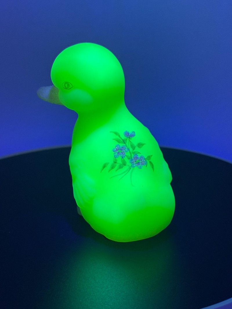 Lot # 36 - Fenton Signed Uranium Glass Duck Glows UV
