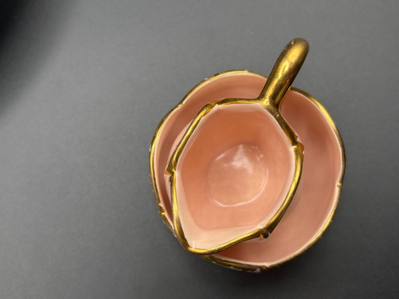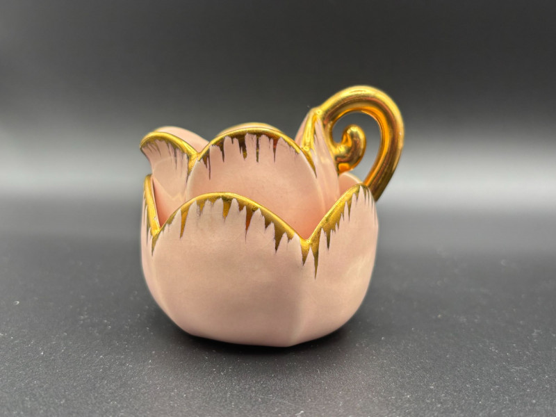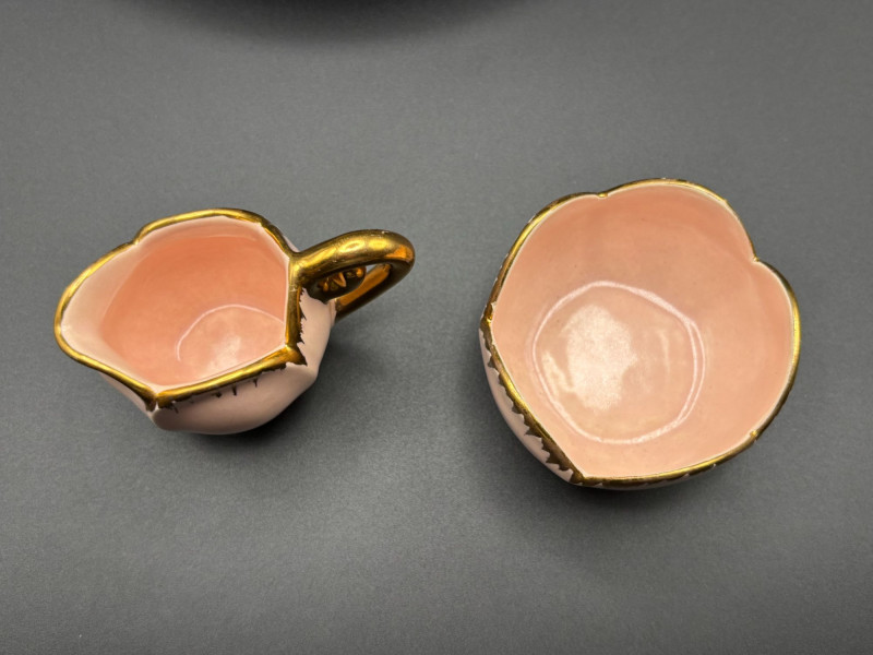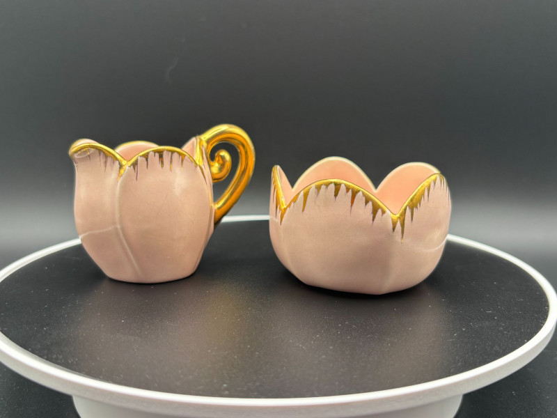 • 🌷 Tulip-shaped pink cream and sugar dishes.