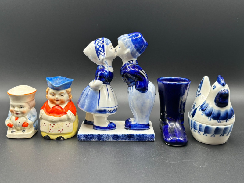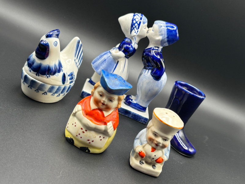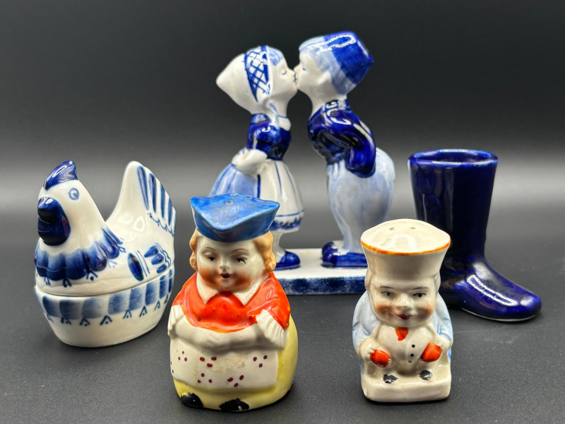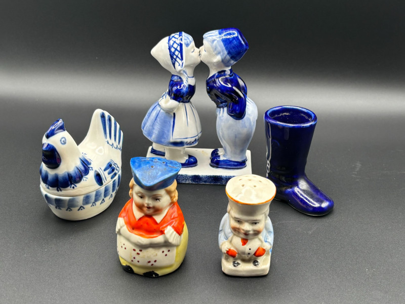 Lot # 43 - Vintage Dutch Blue Lot Shakers Boot Chicken Figurines