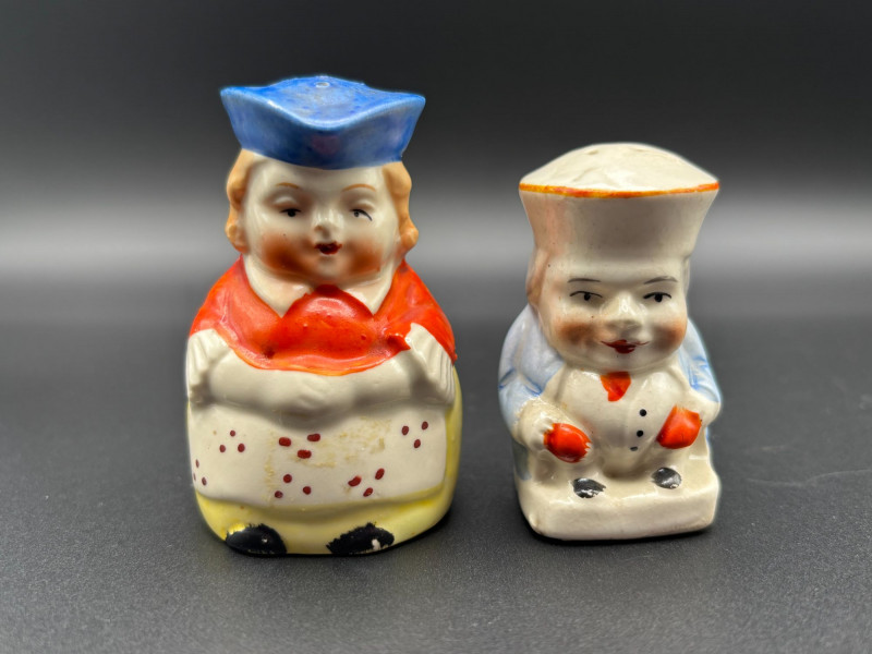 💙✨ VINTAGE FIGURAL CERAMIC COLLECTIBLES LOT ✨💙 A charming mixed lot of nostalgic figural ceramics featuring classic Dutch and character-themed pieces. Each item is listed below: 1️⃣ Dutch Kissing Couple Figurine (Blue & White) 2️⃣ Delft-Style Chicken Trinket Box 3️⃣ Cobalt Blue Boot Toothpick Holder 4️⃣ Toby Jug Style Colonial Lady Salt Shaker 5️⃣ Toby Jug Style Colonial Gentleman Pepper Shaker Perfect for: ✨ Blue & white pottery collectors Condition: Pre-owned vintage condition with age-appropriate wear. Some glaze wear, paint loss, minor imperfections, and manufacturing variations may be present. One shaker shows visible wear at base (see photos). Please review all photos carefully for condition details. 📌 We do our best to accurately describe items and disclose any visible condition issues; however, all items are sold as-is, where-is. Please review all photos carefully and ask any questions prior to bidding. A fun and eclectic vintage lot ready for display or collection!Included in This Lot: