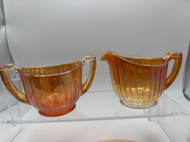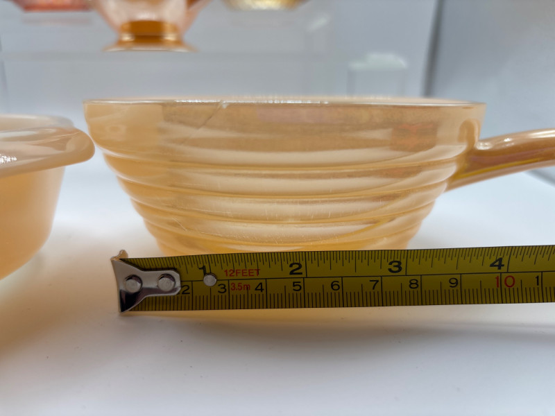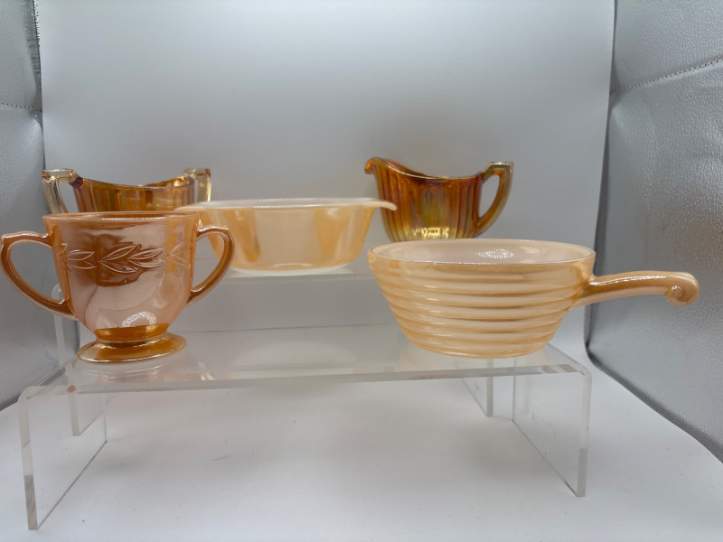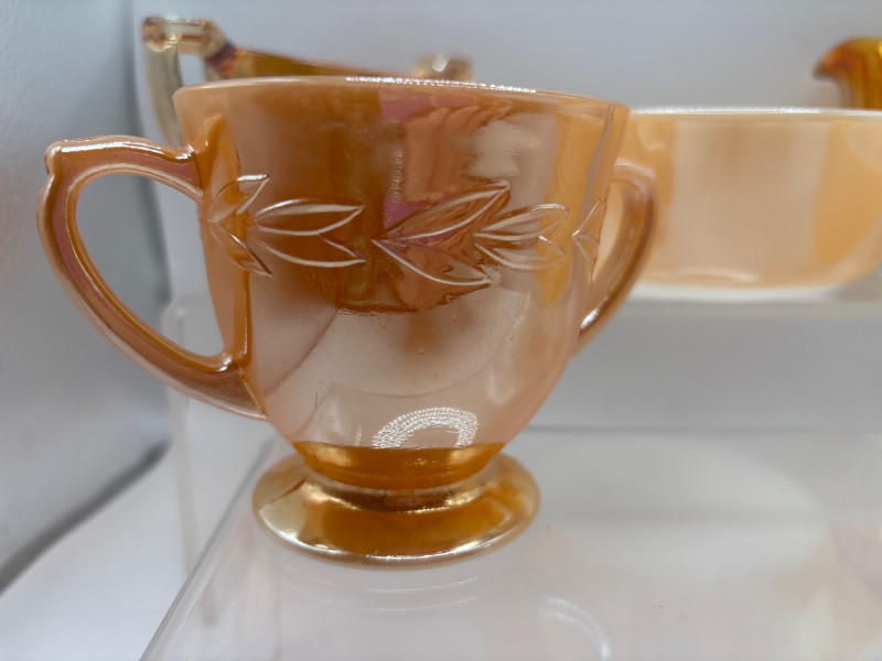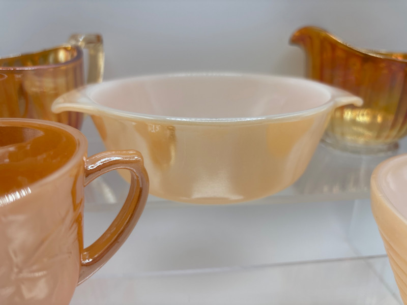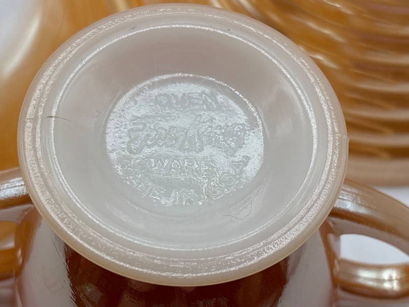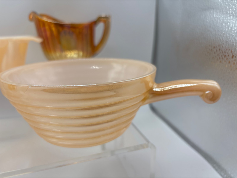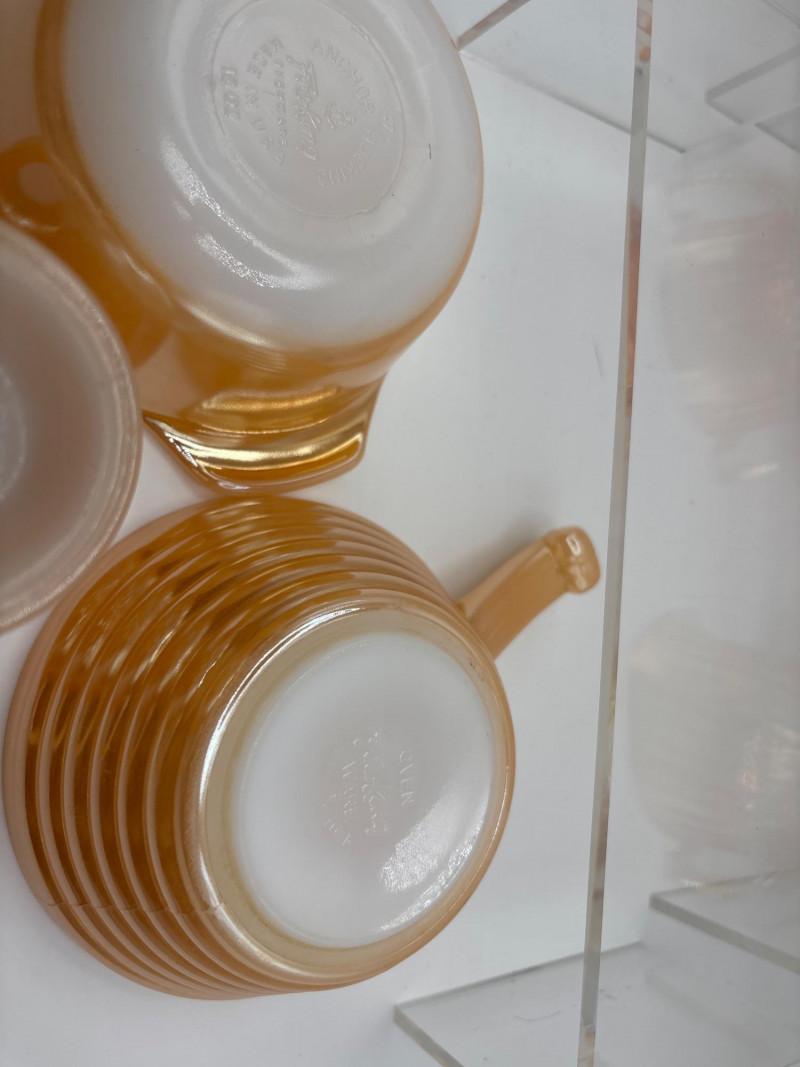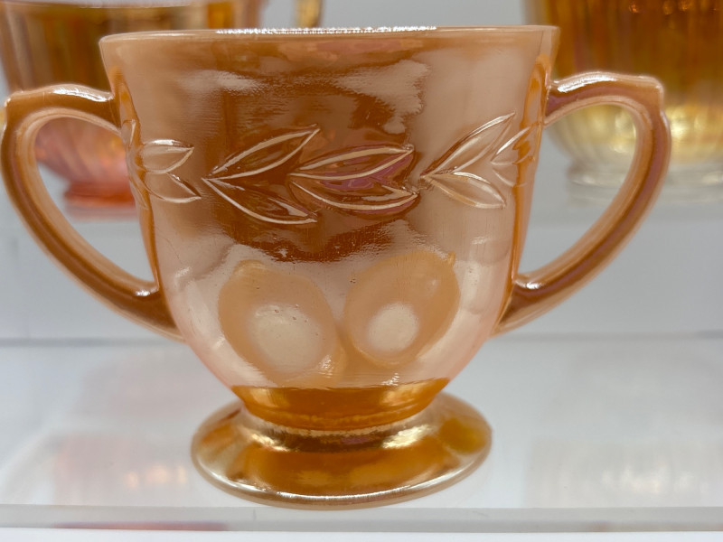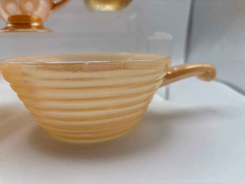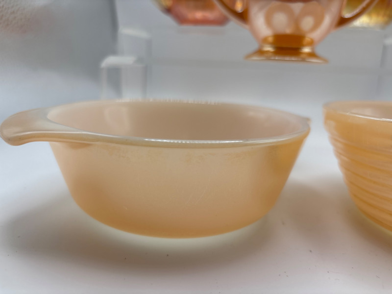 Lot # 62 - Fire-King Primrose Peach Lustre Sugar Creamer & Glassware Lot