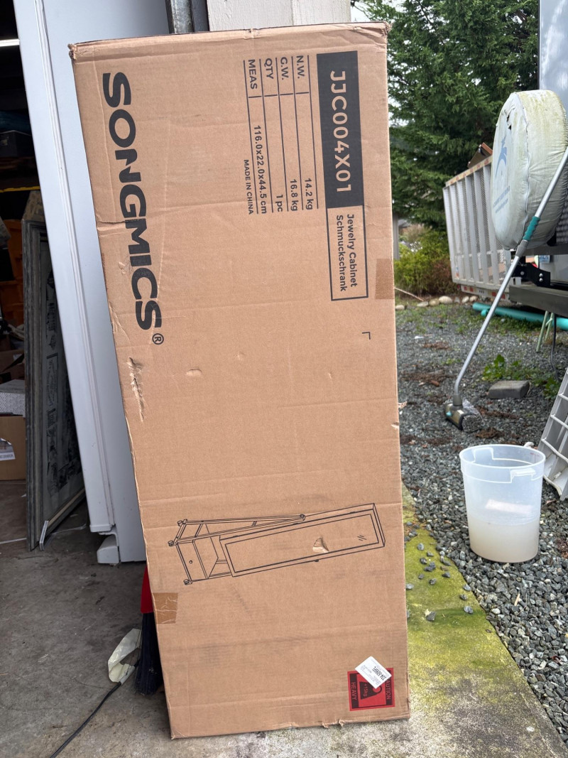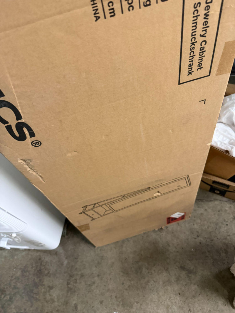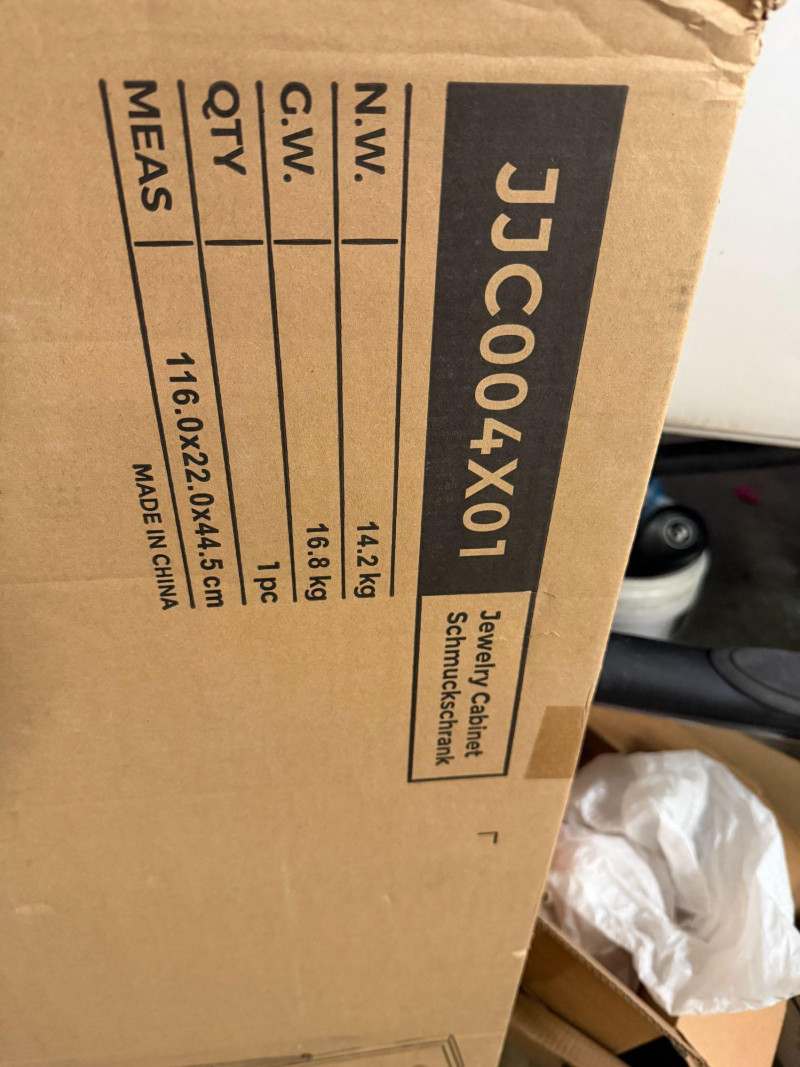 Brand new standing jewelry cabinet with full-length mirror, still sealed in the original box. This tall jewelry organizer is designed to store a large collection of accessories while keeping everything neatly arranged and easy to access. The cabinet features multiple storage sections for jewelry, makeup, and accessories, making it perfect for bedrooms, closets, or dressing areas. Storage features include: 60 earring slots 32 stud earring holes 36 ring slots 32 necklace hooks Bracelet rod Lipstick tray 3 brush compartments 3 interior shelves 2 small storage pockets Large bottom drawer The cabinet is mounted on a stable stand with wheels, allowing it to be moved easily while still providing a full-length mirror for getting ready. Specifications: Product Size: approx. 14.6"D x 16.3"W x 60"H Cabinet Size: approx. 4.2"D x 14.6"W x 42.7"H Material: MDF cabinet, metal legs, glass mirror Weight: approx. 31.3 lbs Package includes: Jewelry cabinet Assembly kit Anti-tip kit Instructions ⚠️ Note: The item is new and sealed in the original box, so the exact color inside the package is unknown. This organizer is perfect for: Jewelry storage Bedroom organization Makeup storage Gift giving New in sealed box. Contents have not been opened or assembled. 📦 Shippable Standing jewelry armoires like this are popular for maximizing storage while saving space, combining mirror functionality with organized jewelry storage in one piece of furniture.