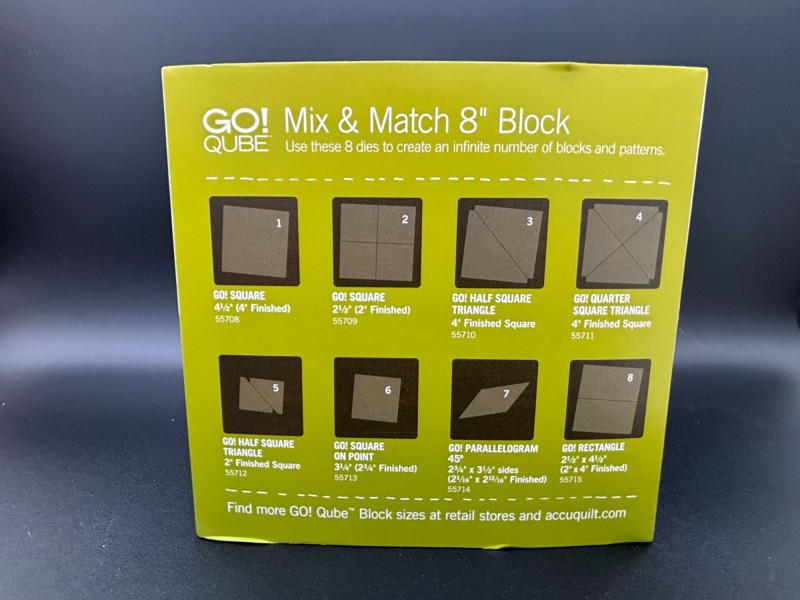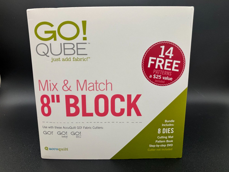 CAN BE SHIPPED AccuQuilt GO! Qube Mix & Match 8" Block set. This set appears new and shows no signs of use. Includes: (Cutter not included.) Designed to create a wide variety of 8" mix-and-match quilt block designs using the AccuQuilt GO! system. A great addition for quilters looking to expand their block options with precision-cut pieces. Please review photos for exact contents and condition.