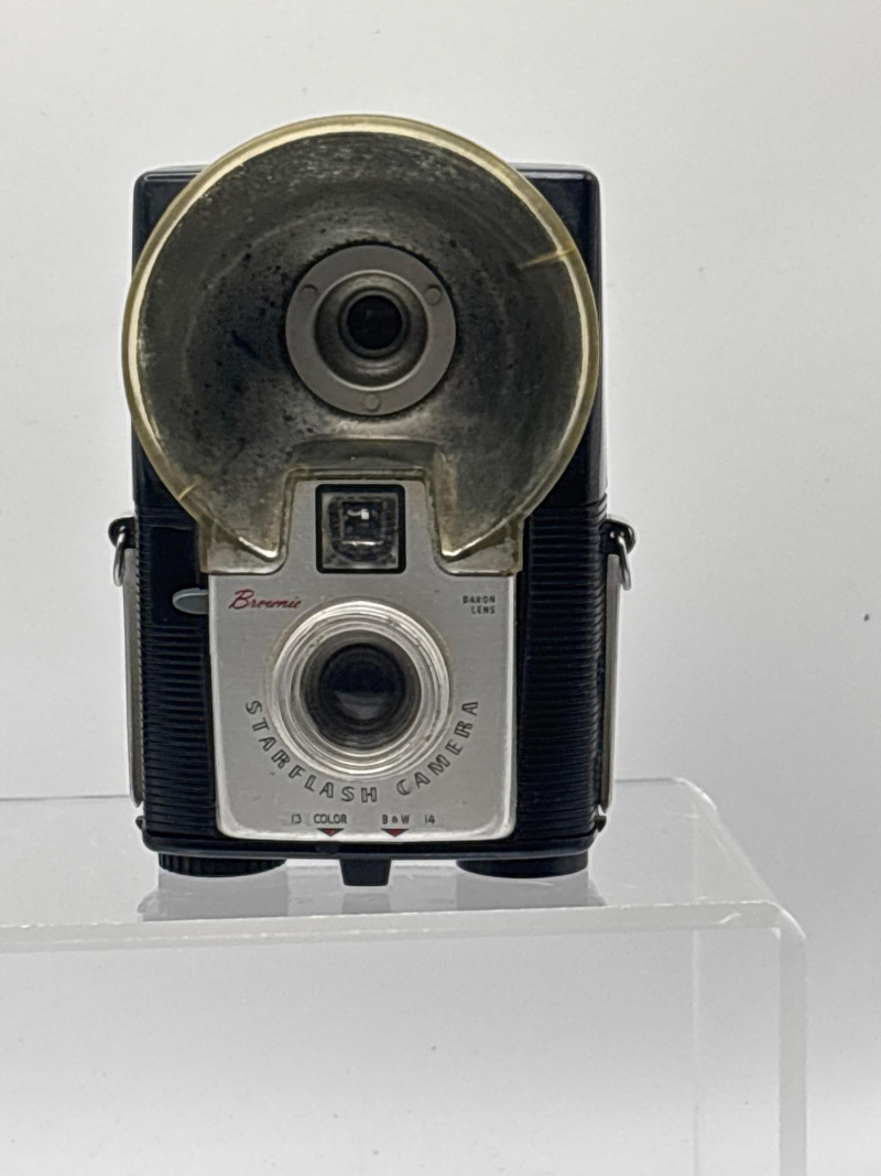 Interesting vintage camera lot featuring a Pentax SLR camera body and a classic Kodak Brownie Starflash camera with built-in flash reflector. This pair represents two different eras of photography—from simple snapshot cameras to more advanced 35mm SLR systems. The Pentax camera body features the well-known Pentax mechanical design used by many photographers learning film photography. Pentax SLR cameras became popular for their reliability and compatibility with interchangeable lenses. Also included is a Kodak Brownie Starflash camera, recognizable by its large flash reflector housing. Brownie cameras helped bring photography to the masses and became one of the most widely used cameras of the mid-20th century. Together these cameras make a great starter vintage camera collection, display pieces, or parts/restoration lot. • Pentax SLR camera body (no lens) • Brands: Pentax / Kodak Vintage condition with wear consistent with age. Untested. Please review photos carefully for condition. 📦 Shipping available. Kodak’s Brownie series revolutionized photography by making cameras simple and affordable for everyday people. Pentax later helped advance photography with reliable 35mm SLR systems, allowing photographers full creative control with interchangeable lenses. This lot highlights the evolution of consumer photography over several decades.