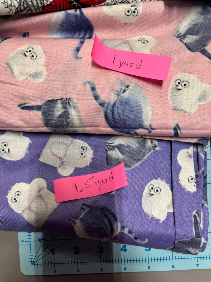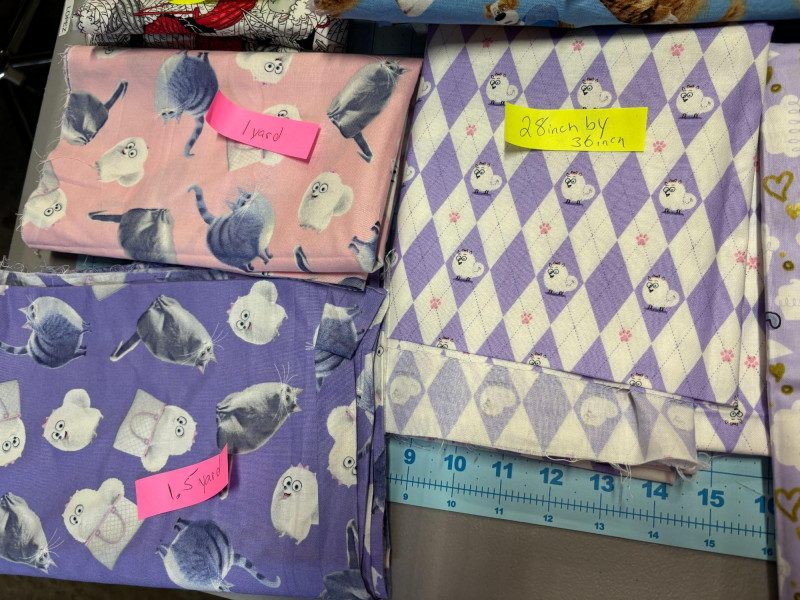 Shippable-large box Great mixed lot of quilting cotton fabric, including yardage and coordinating scraps. Perfect for quilters, crafters, and sewing enthusiasts looking to build their stash! Includes: SOME TULA PINK-first run, free fall wide back scraps with 3-4 birds. Alexander Henry Dragons. Assorted yard cuts Coordinating scrap pieces Batik-style prints Novelty prints (including dog and animal themes) Geometric and polka dot prints Solid coordinating fabrics Fabrics appear to be primarily cotton quilting-weight. Pieces range from small scraps to multi-yard cuts (see photos for approximate quantities). Condition: Perfect for: Quilting projects Patchwork Craft sewing Appliqué and small projects Building a fabric stash Nice variety of colors, including blues, greens, purples, pinks, and novelty prints.
